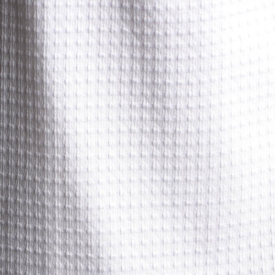 凹凸のある編地により通気性が高く、ドライタッチな肌離れの良さと清涼感があります。同時に放湿性も高い為、着ていてベタベタすることはほとんどありません。ストレッチ性に優れ、元々シワがある為、アイロン不要なイージーケアも魅力な快適な素材です。