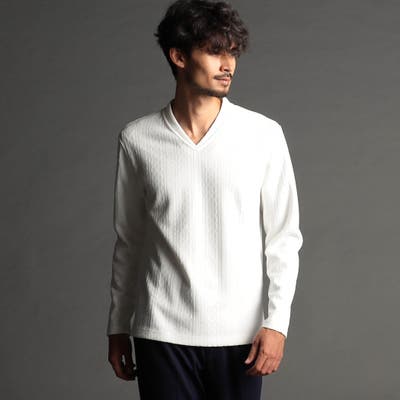 後衿を高めに設定したドレス衿Vネックの長袖プルオーバー。首まわりをシャープに見せるVネックデザイン、カット仕立てのニットソーで軽い仕上りです。