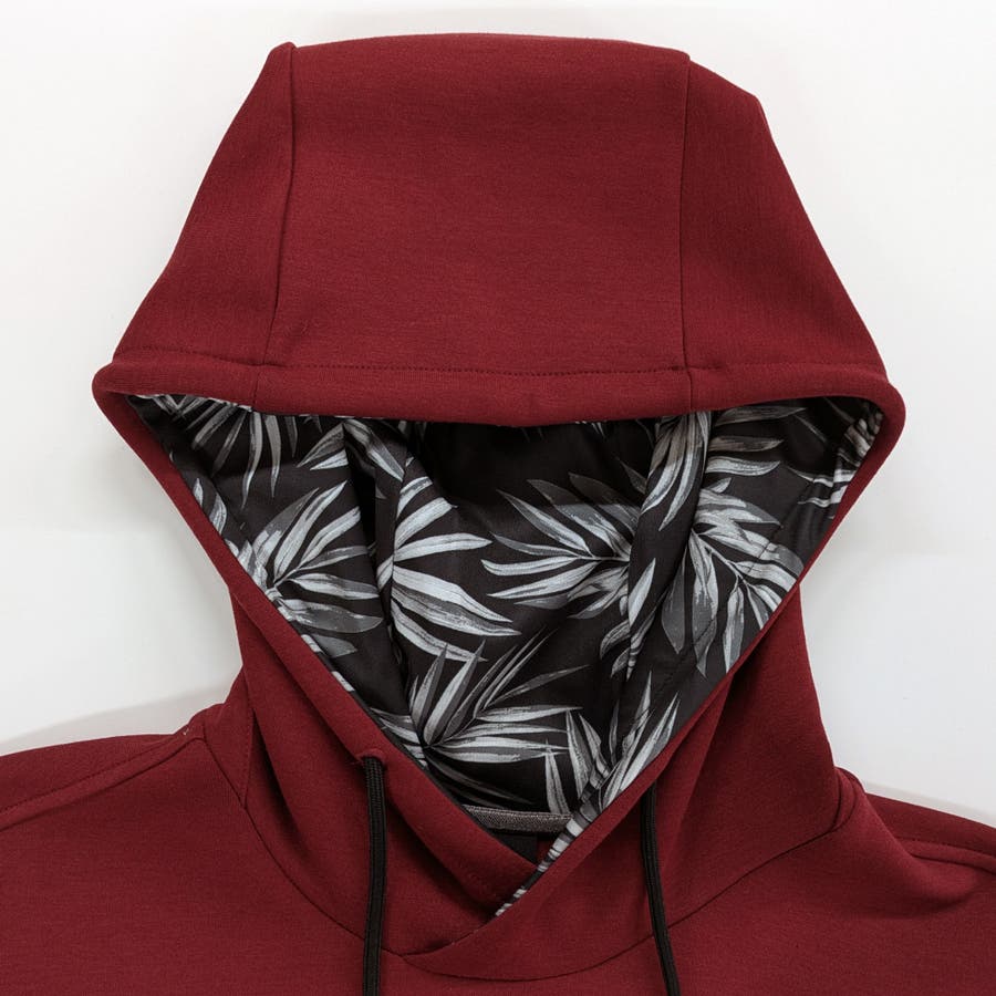 ※01レッドのフード内側のボタニカル柄のプリントカラーは、ブラック(ベース)×ホワイト(グラデーション)になります。