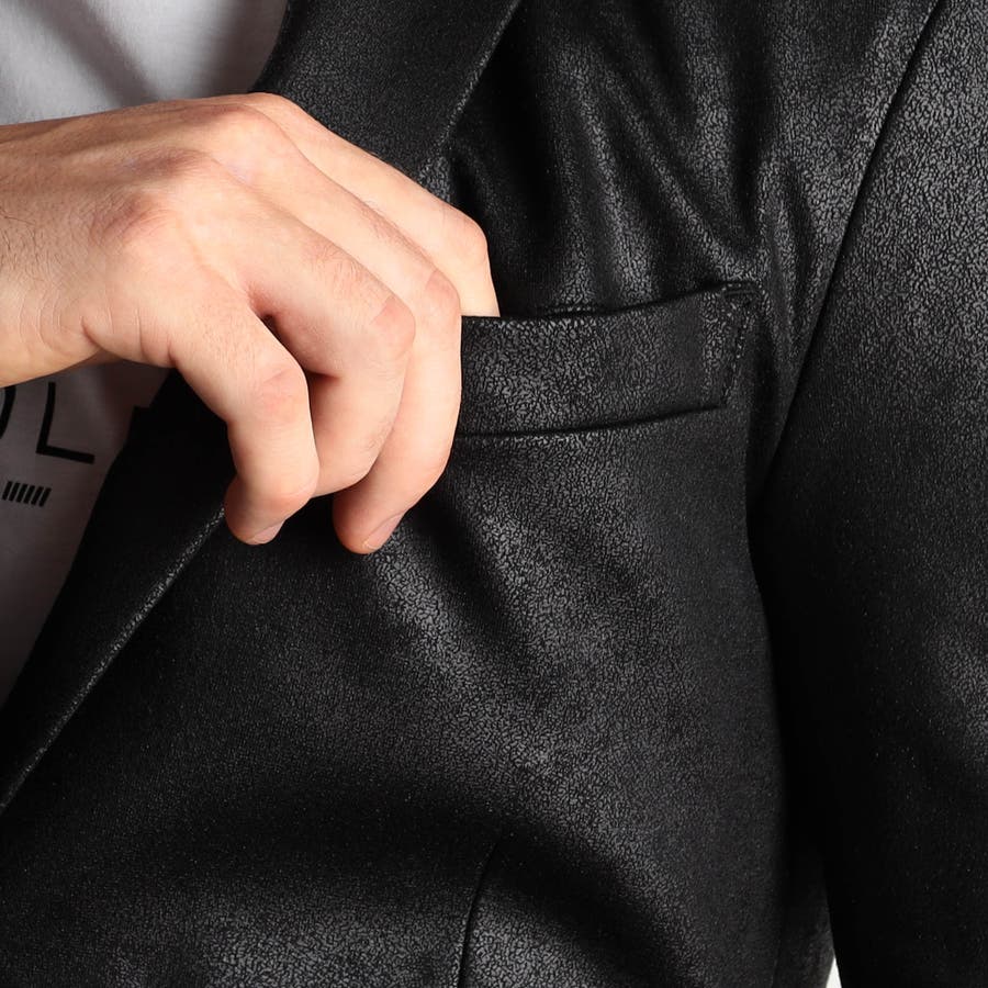 背裏、脇のフラップポケット、袖口の本切羽等、よりフォーマルな仕様に近づける事で、ビジネスシーンでも着用出来る様にしております。
