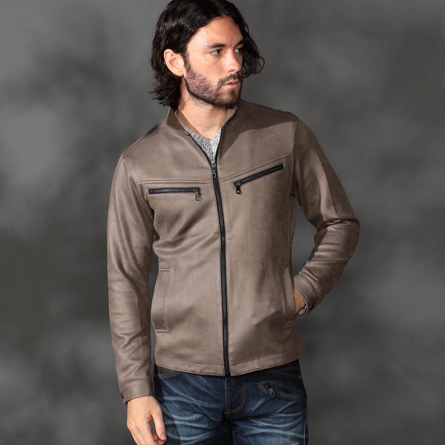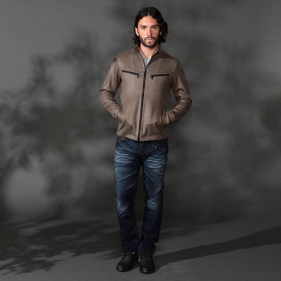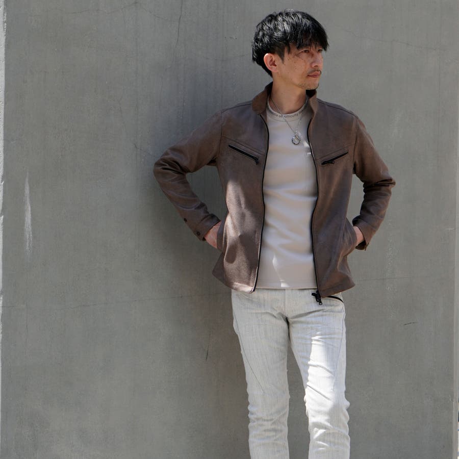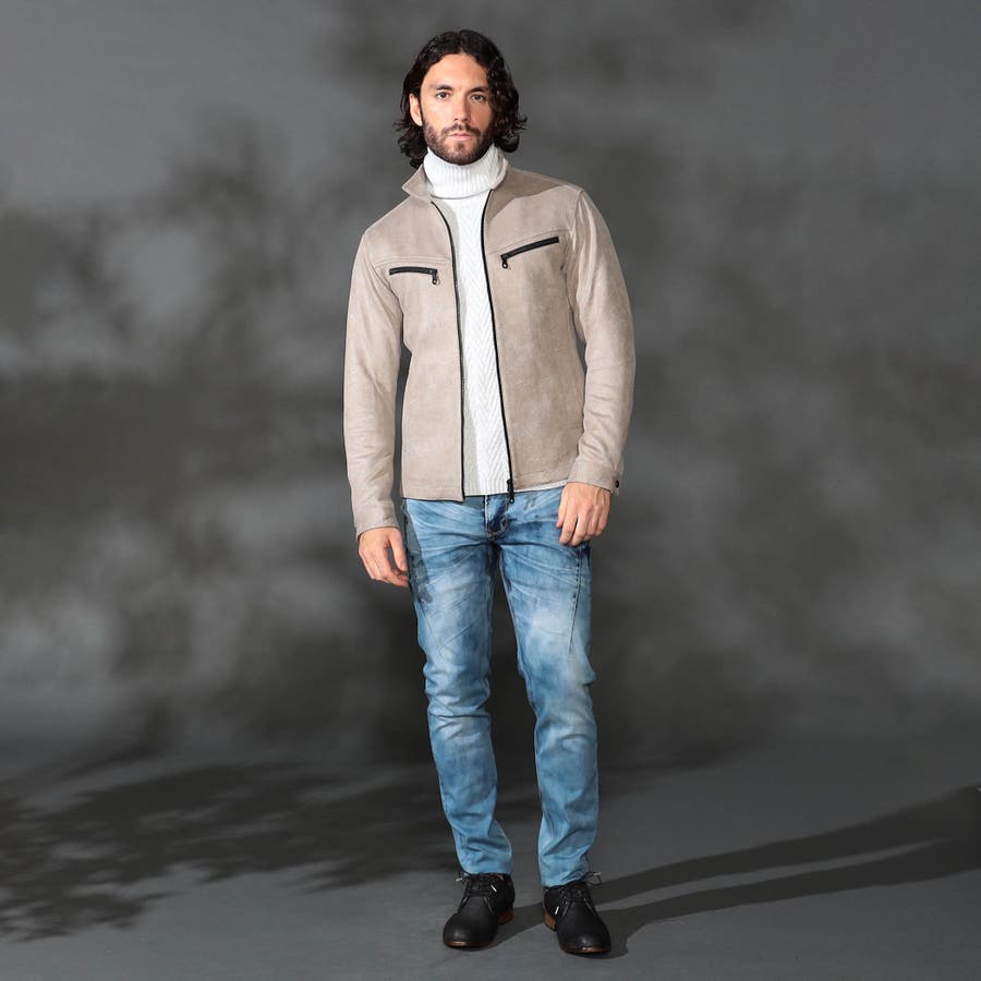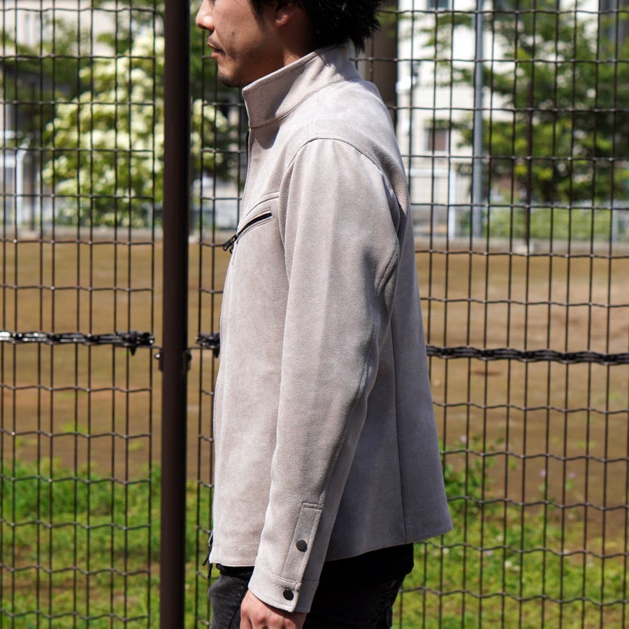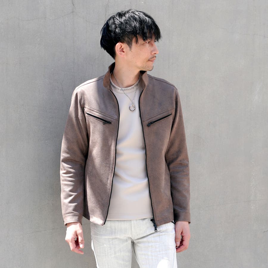 柔らかなスウェード素材を使用したライダース風ブルゾン。