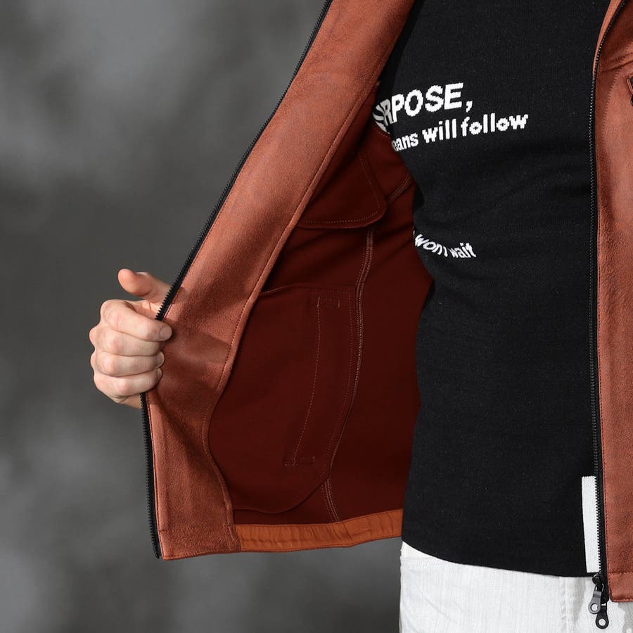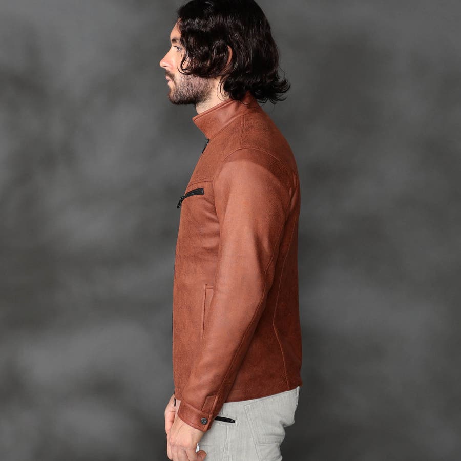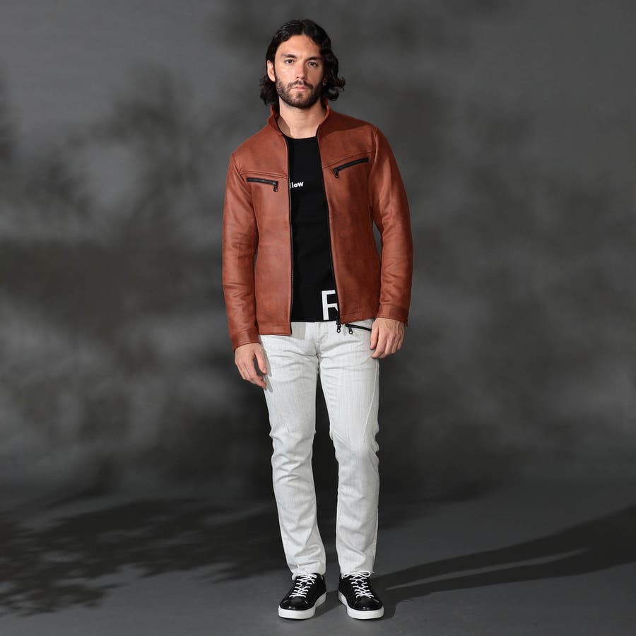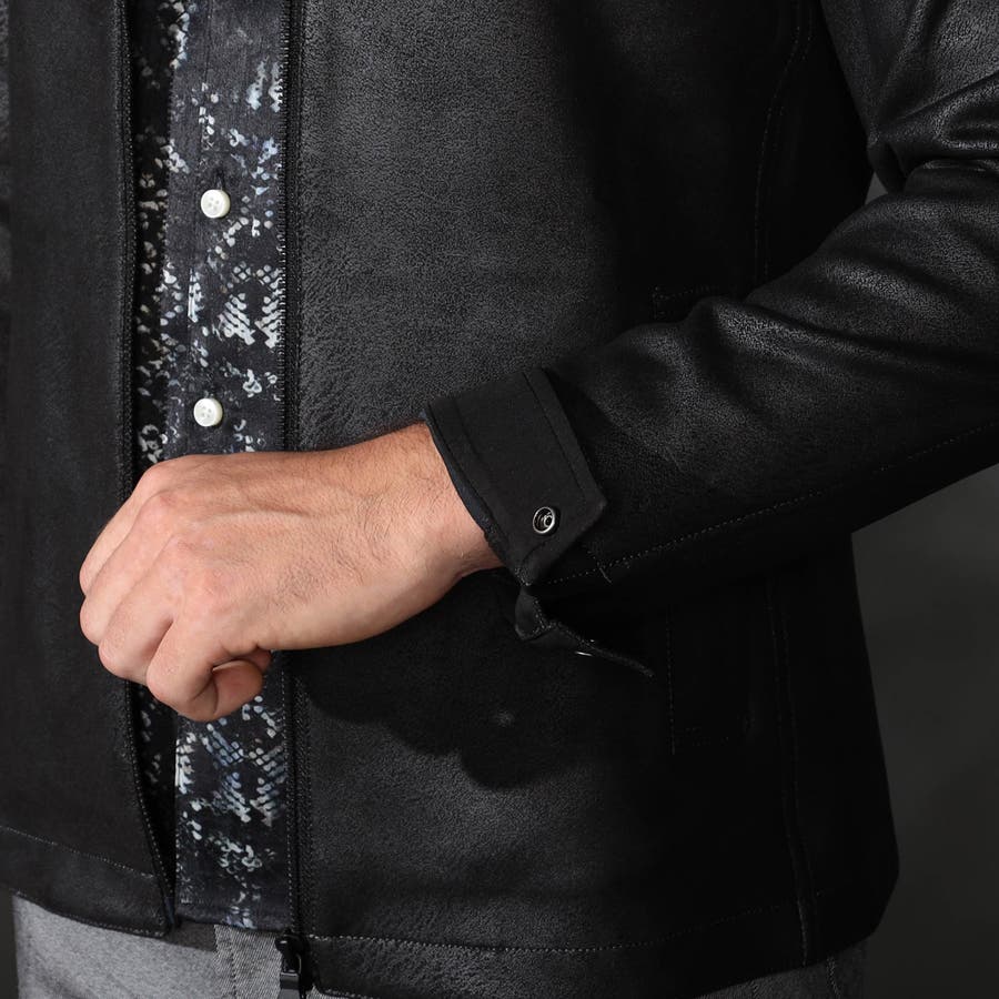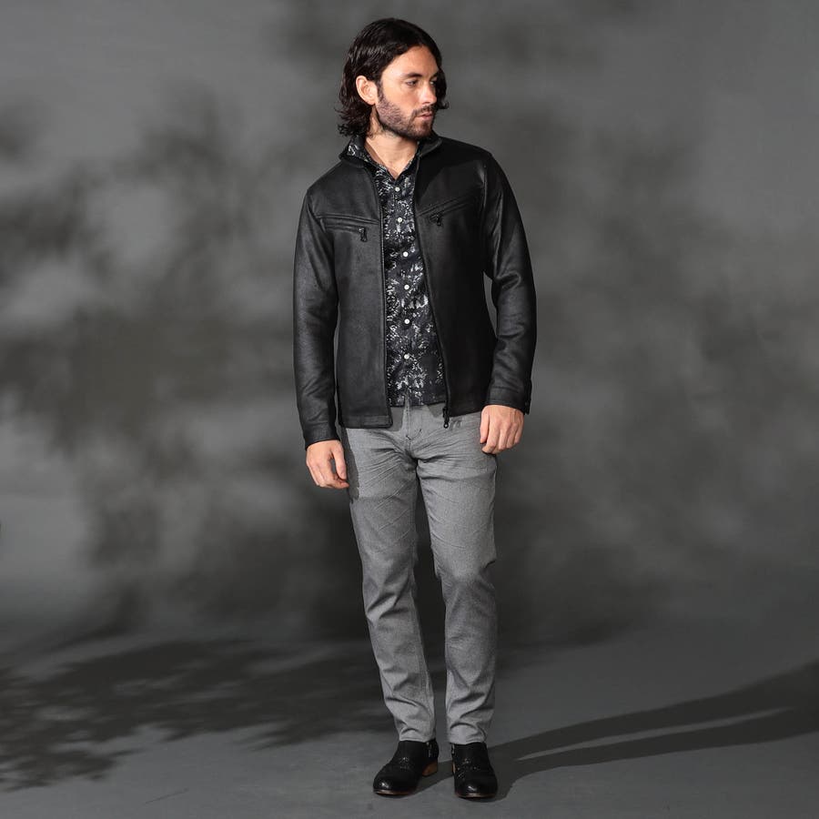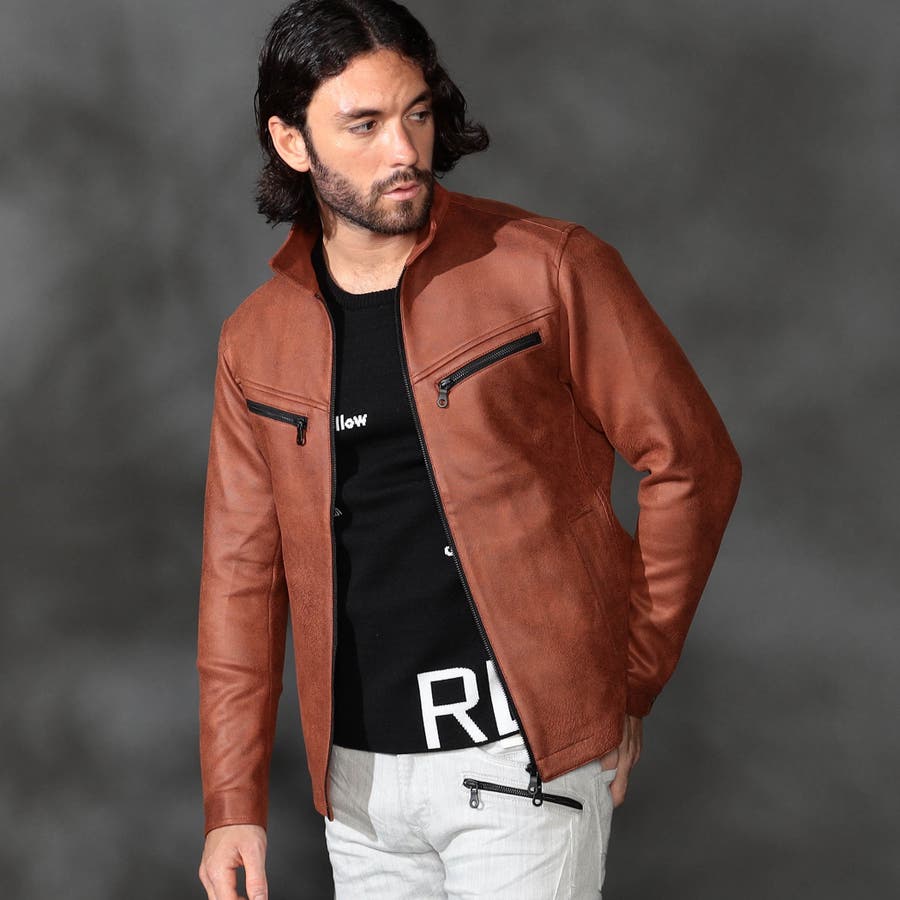 柔らかなスウェード素材を使用したライダース風ブルゾン。
