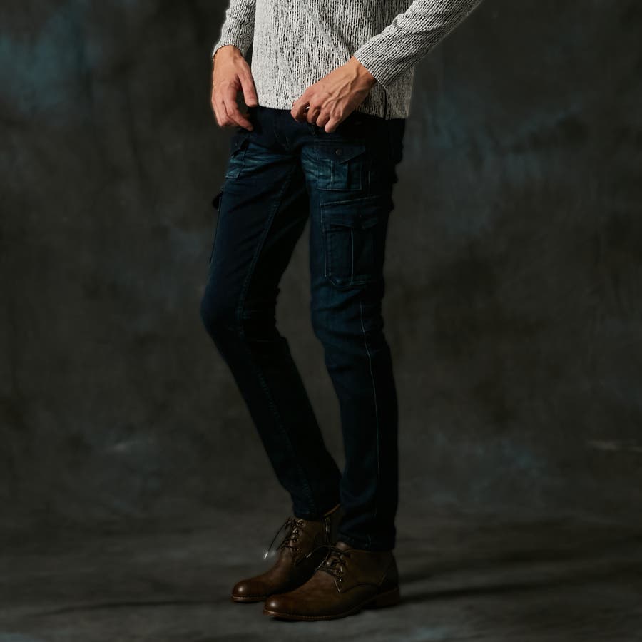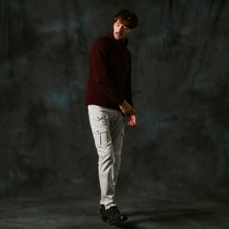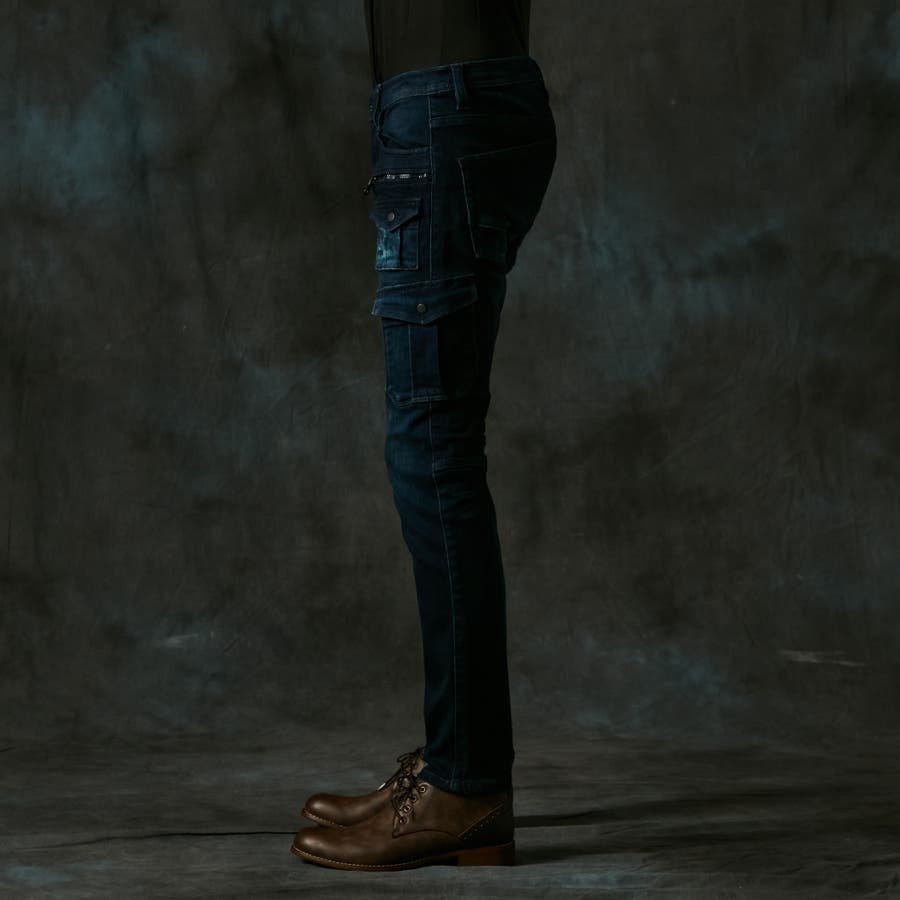 重く野暮ったくなりがちなカーゴパンツですが、ポケットの位置とサイズを調整する事でシャープな印象に仕上げています。