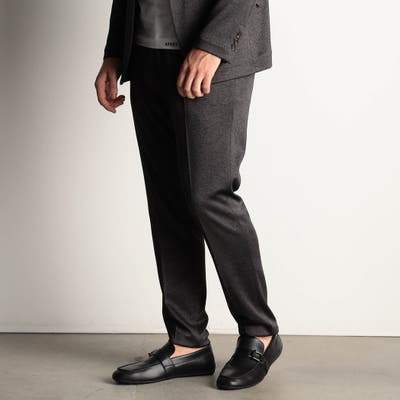 91トップグレー、92トップチャコールにはポリエステルの杢糸とポリウレタンの混紡糸で編み立てた、Wフェイスのジャガード素材を採用。