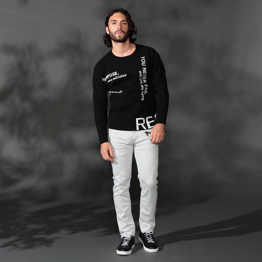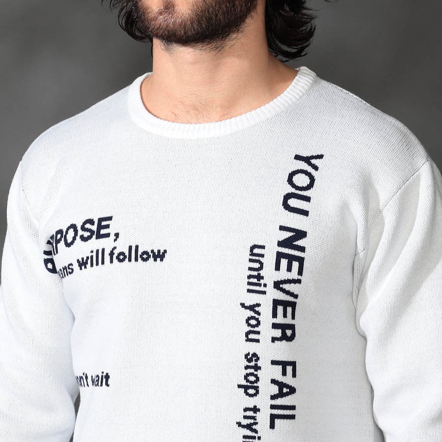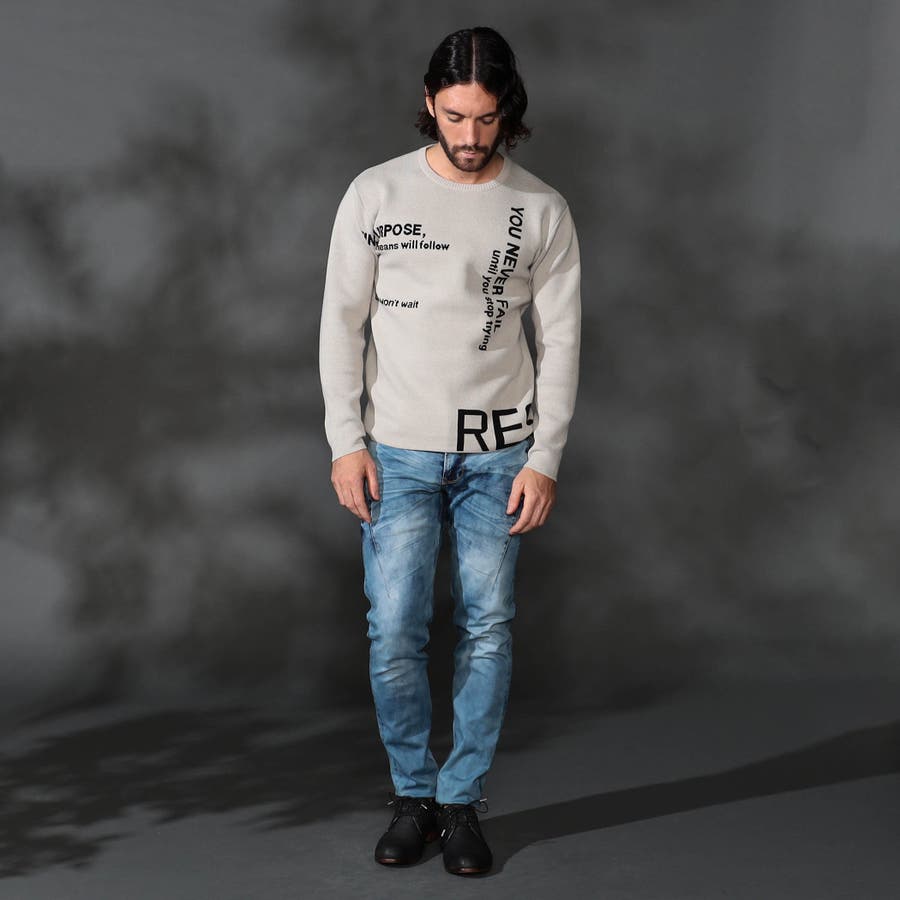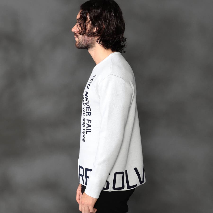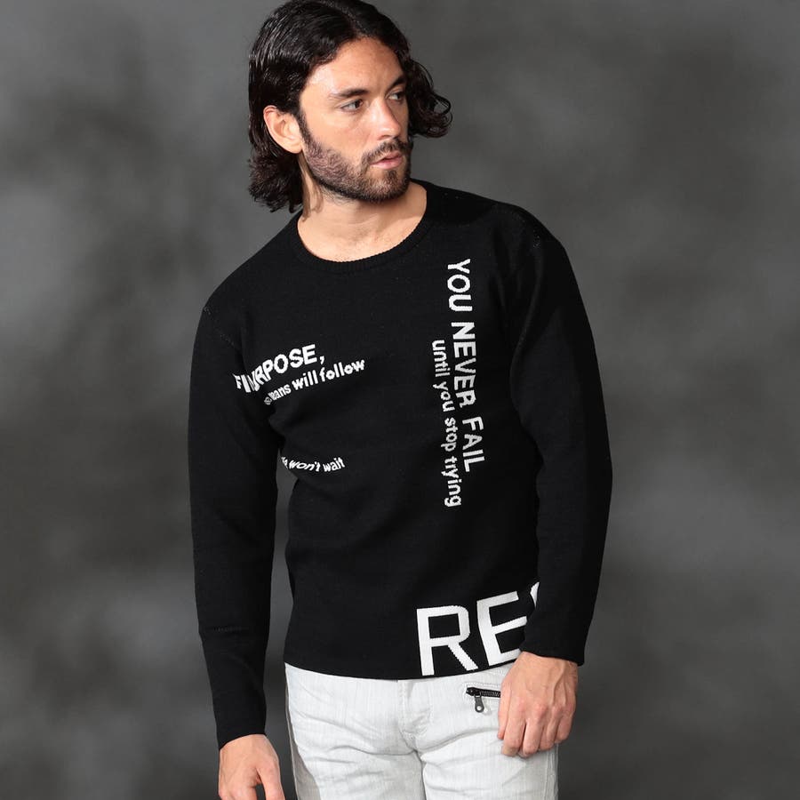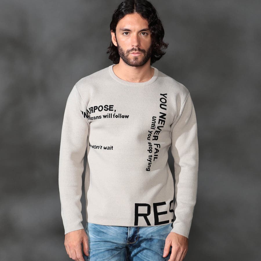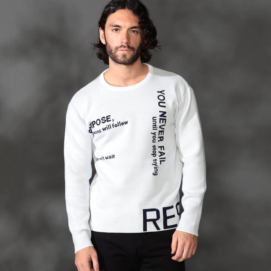1枚着でもインナ-でもサマになる大胆なロゴジャカ-ドがポイントの、クル-ネックニットになります。