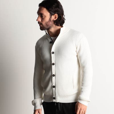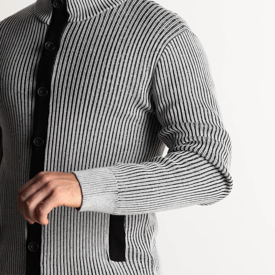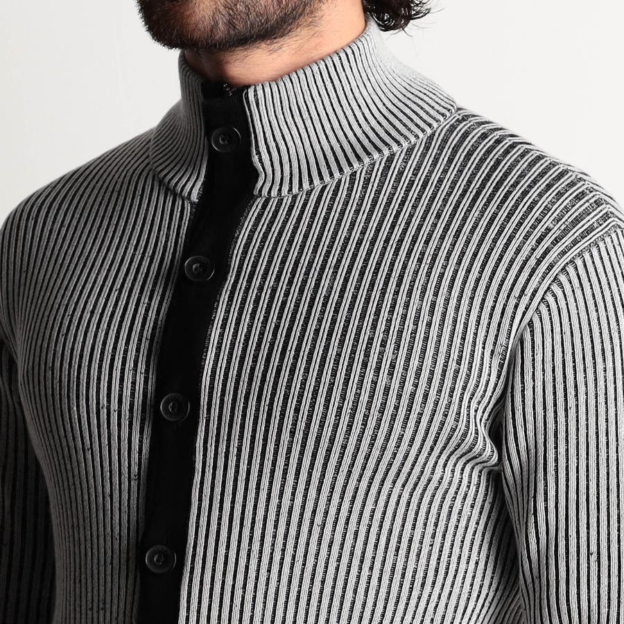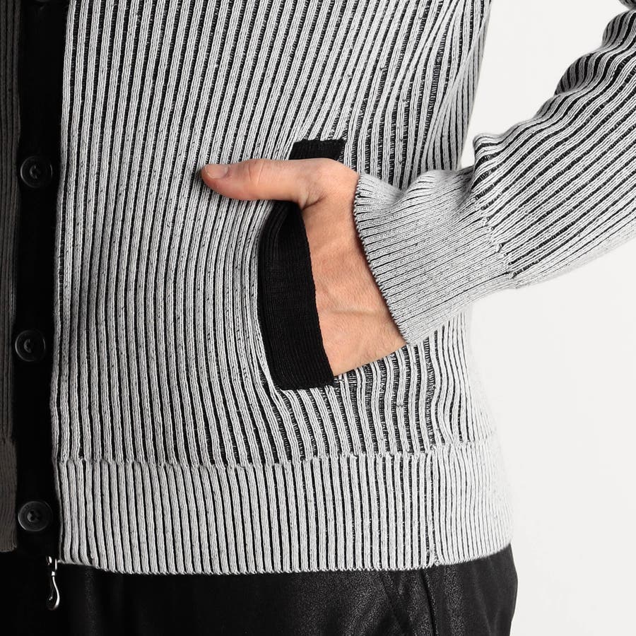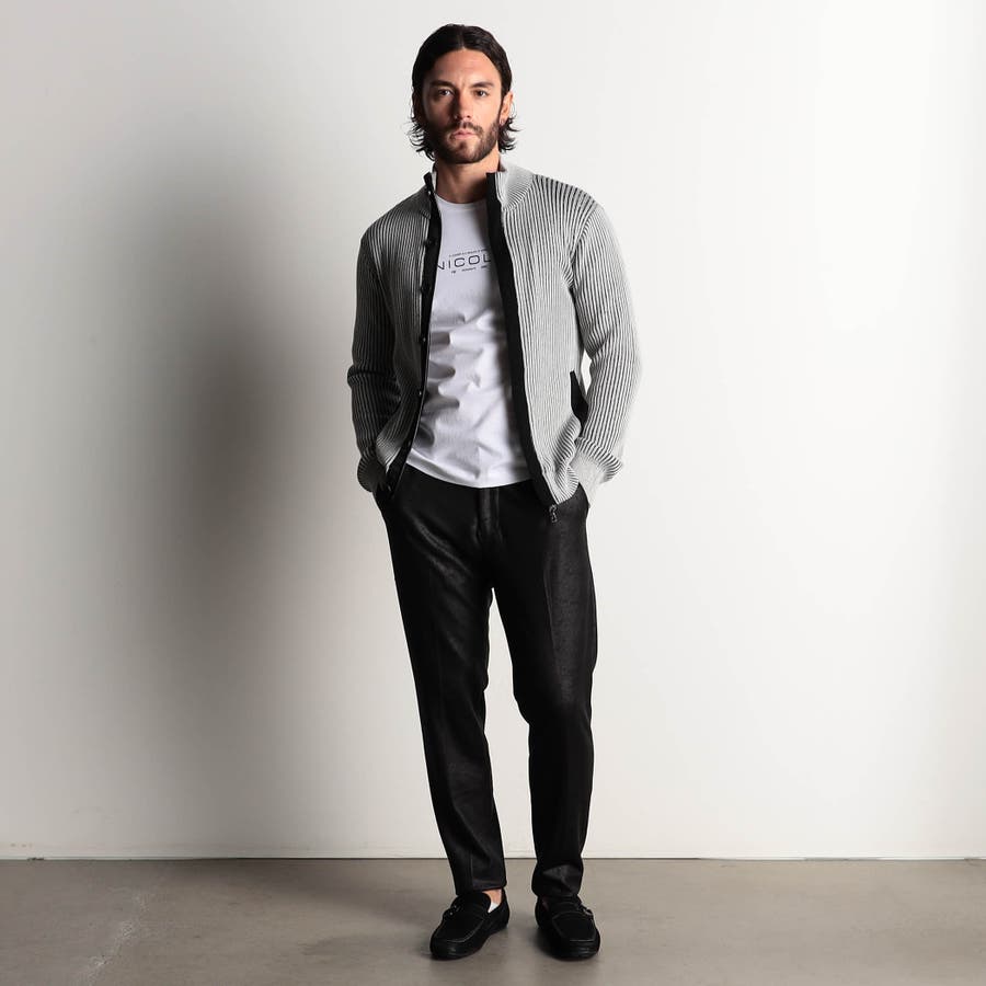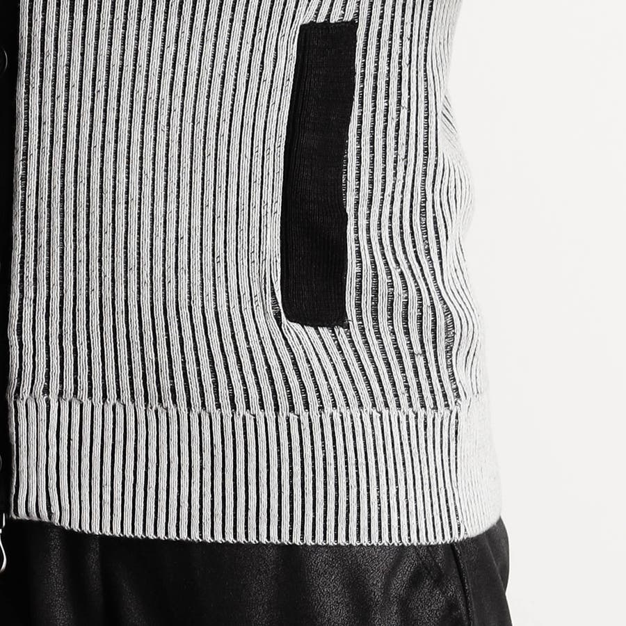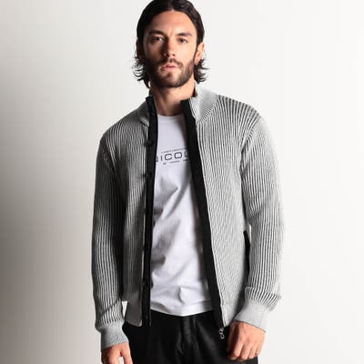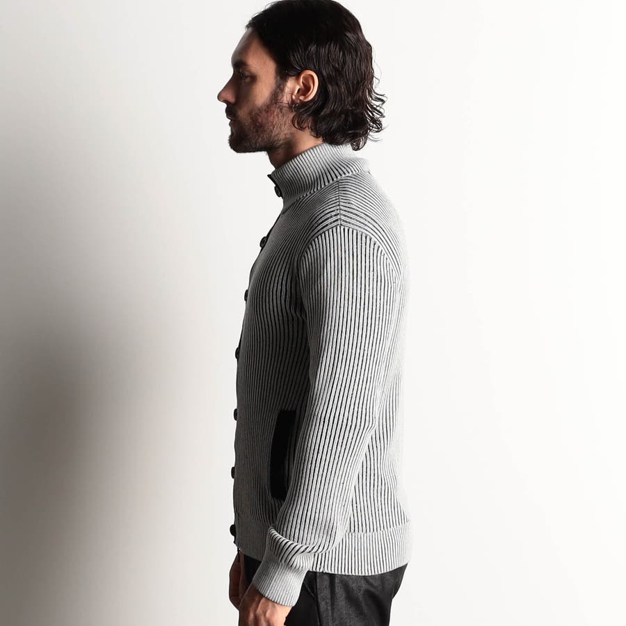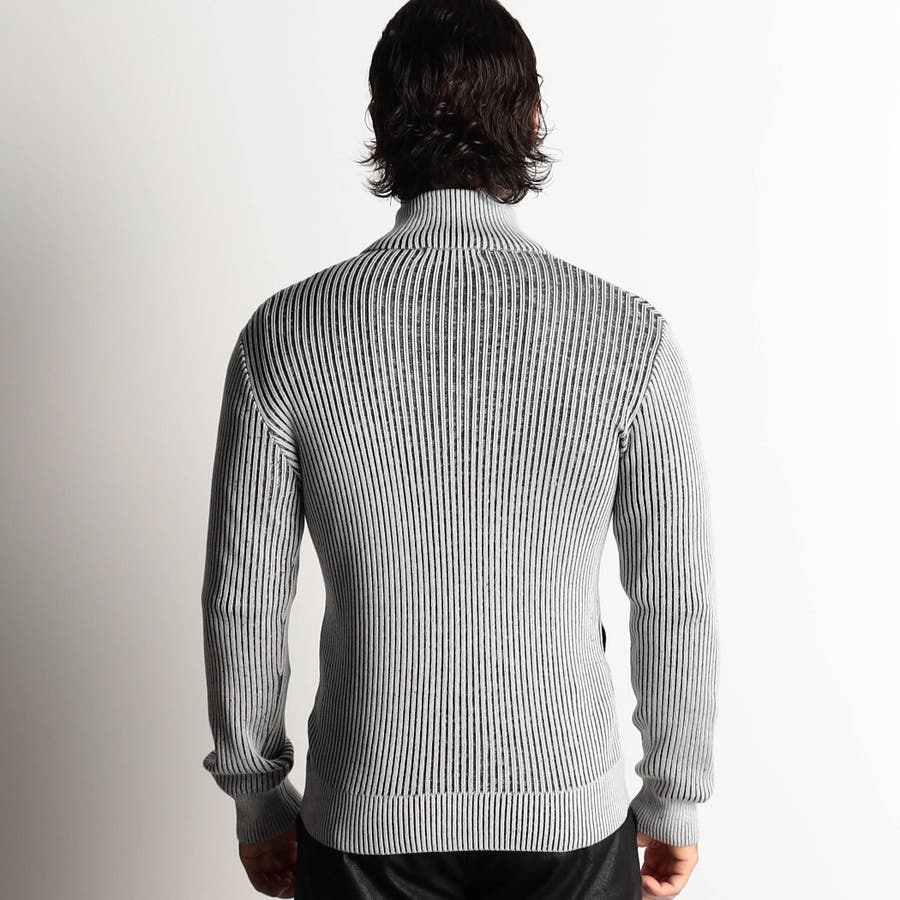 ハイゲ-ジ<12GG>で編み立てたプレ-ティング RIBのスタンド ZIP-UP ブルゾン。