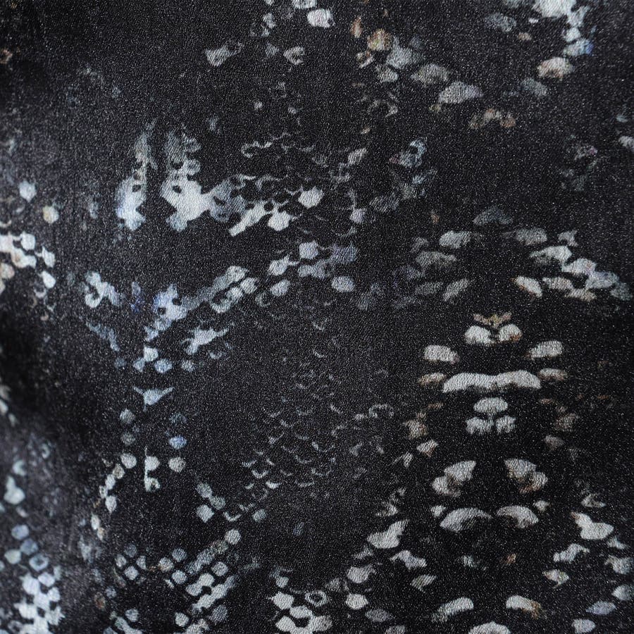 植物の蔦が絡まったような柄のストレッチジャガード素材を基布に、オリジナルのパイソン柄プリントを施した素材を使用。