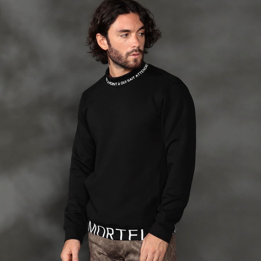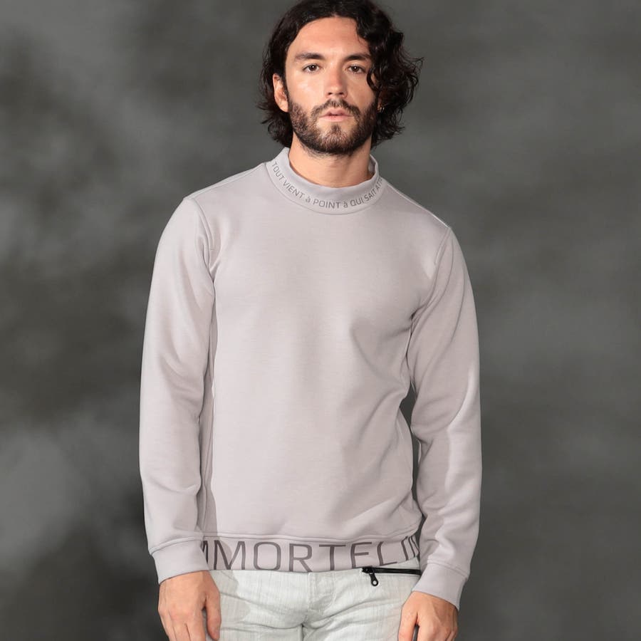 衿と裾切り替えのプリントデザインで、少しゆとり感を出した大人な雰囲気のモックネックプルオ-バーになります。