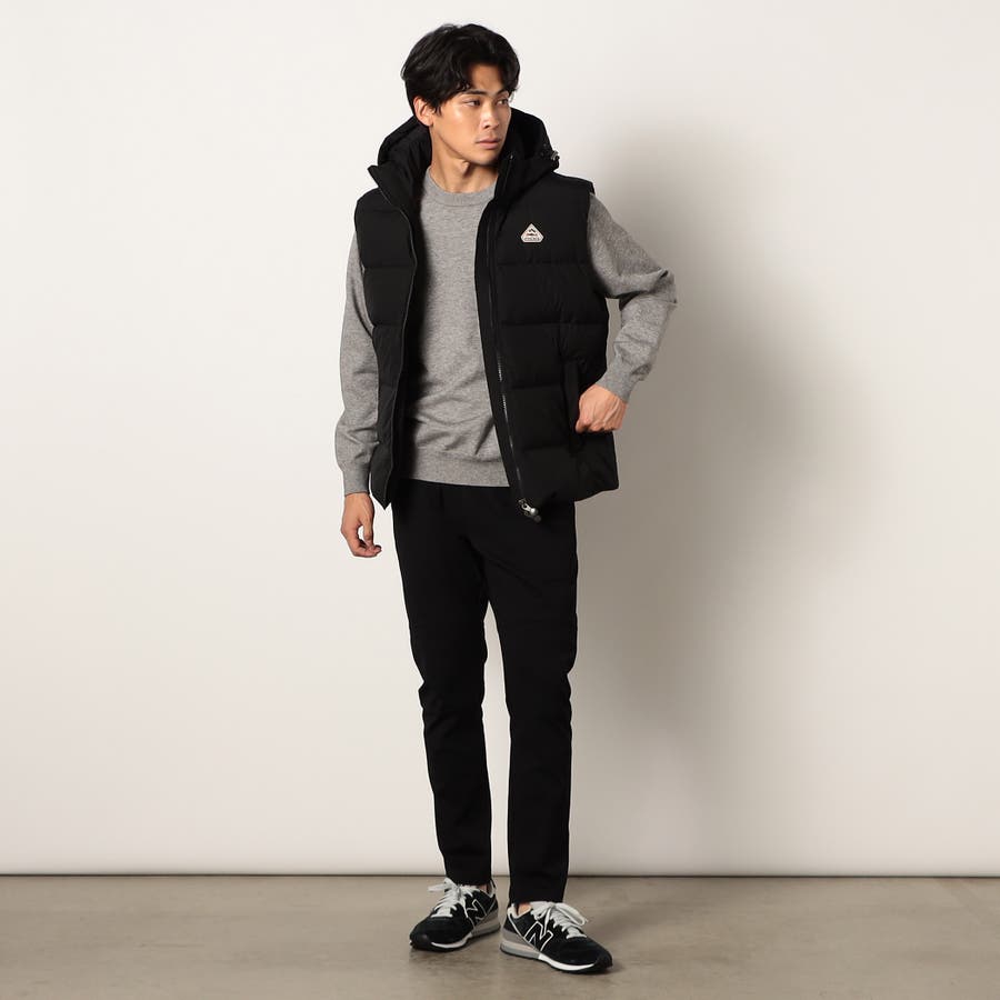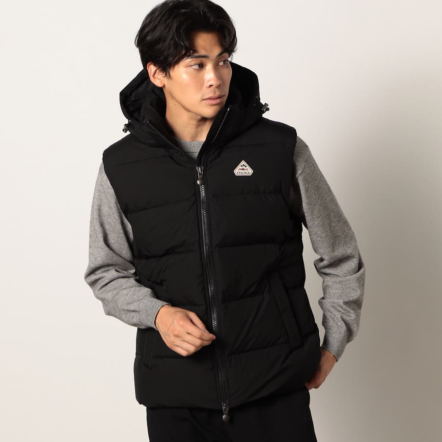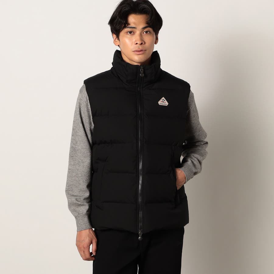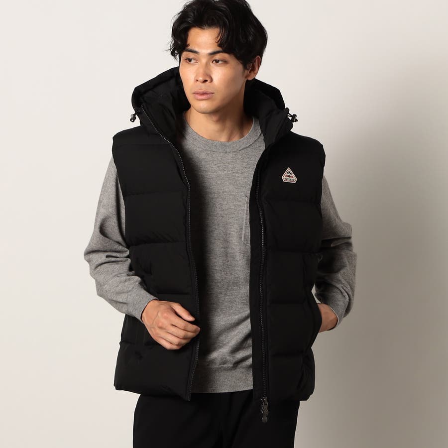 ジャケットタイプと同様に細めのピッチでキルトステッチを前面に施しシャープに仕上げたヒップレングスのベストで、フードが着脱可能なシンプルなデザインはフランス本国でもベストセラーとなっています。