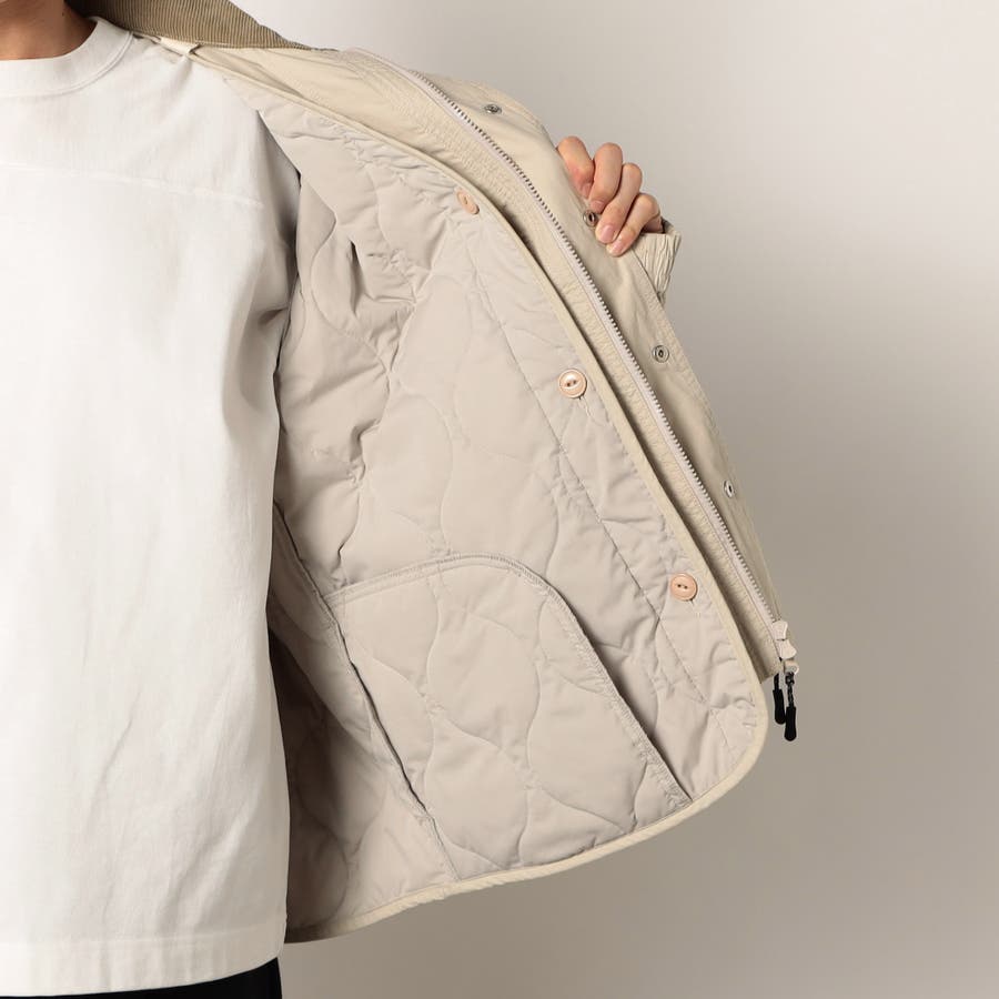 袖口も調整でき、ライナーはミリタリーライナー風のひょうたんキルトステッチで、中綿を入れすぎない絶妙な厚みに仕上げています。