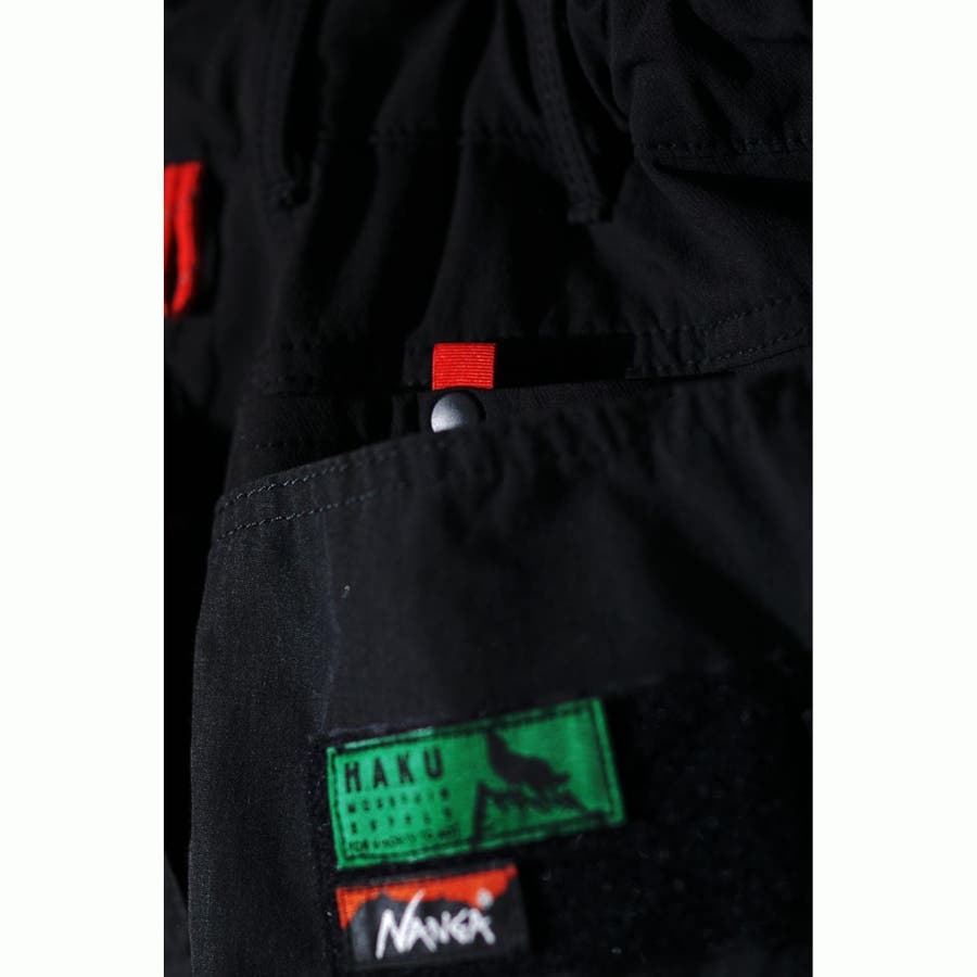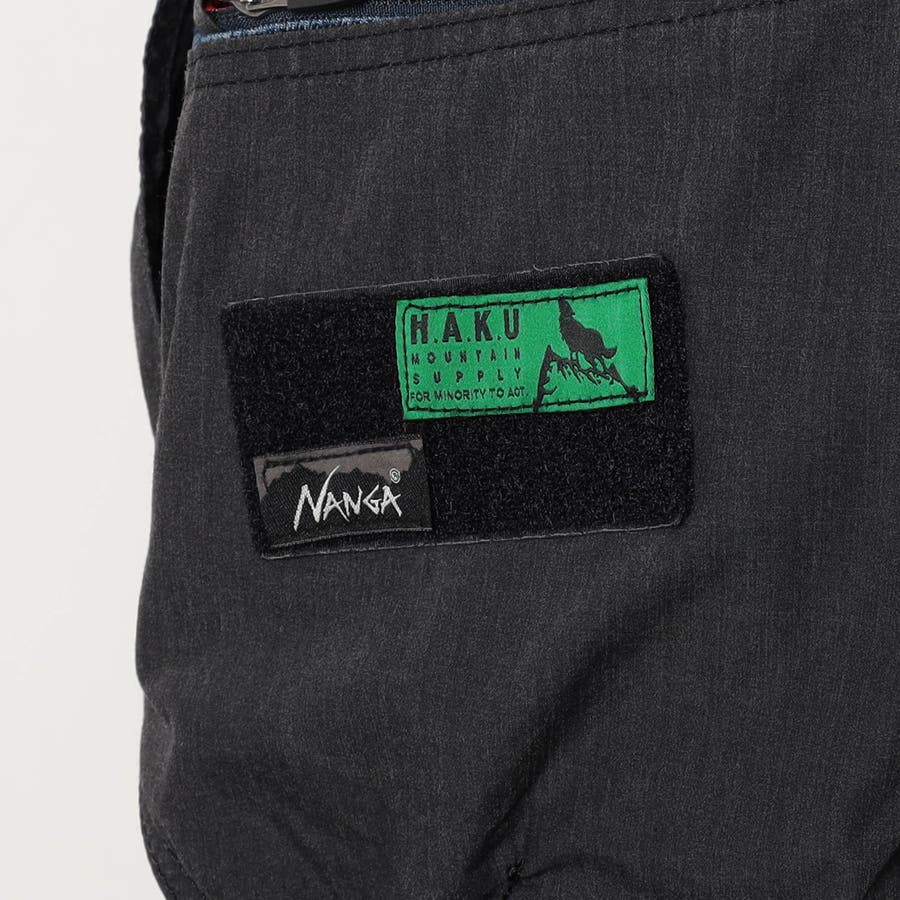 取り外し可能なワッペンは、【NANGA】→ネーム大小各1枚(小は左後ろ表ポケット 大は左内側の後ろポケット袋布) 【H.A.K.U】 →ネーム1枚(左後ろ表ポケット)がそれぞれついています。その日の気分でアレンジできます。