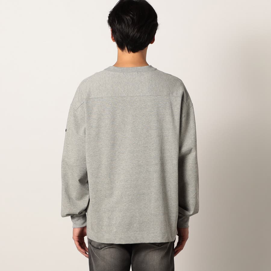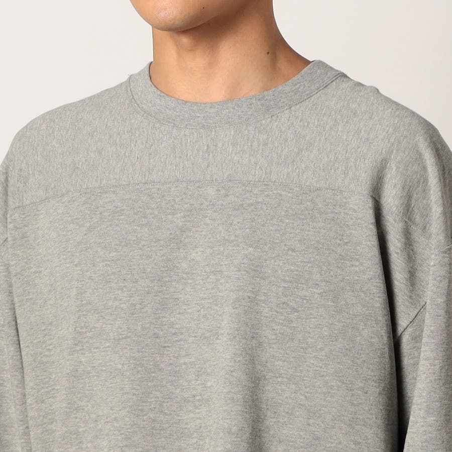 ゆったりとしたサイズ感でフットボールTシャツをイメージした切り替えを前後に入れてアクセントにしています。