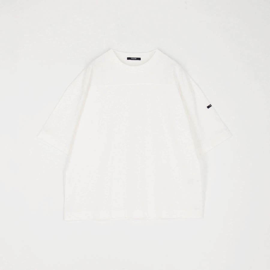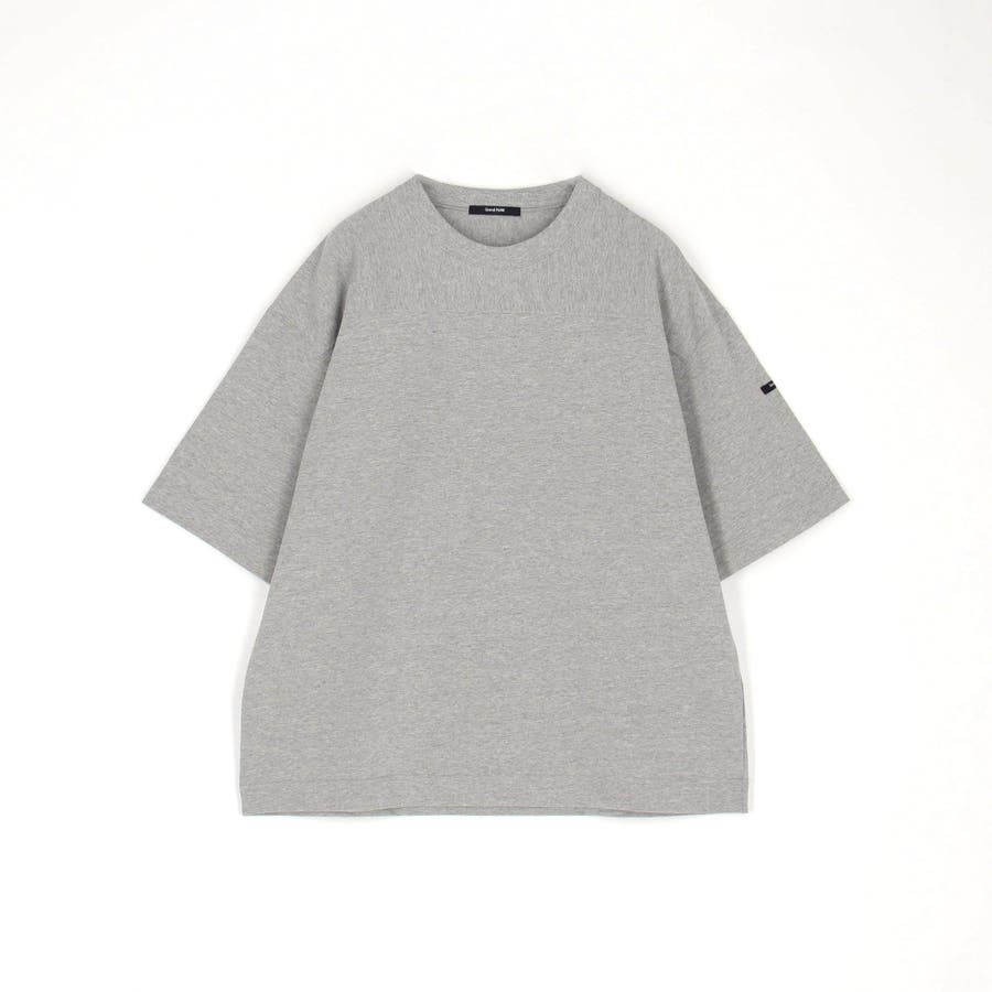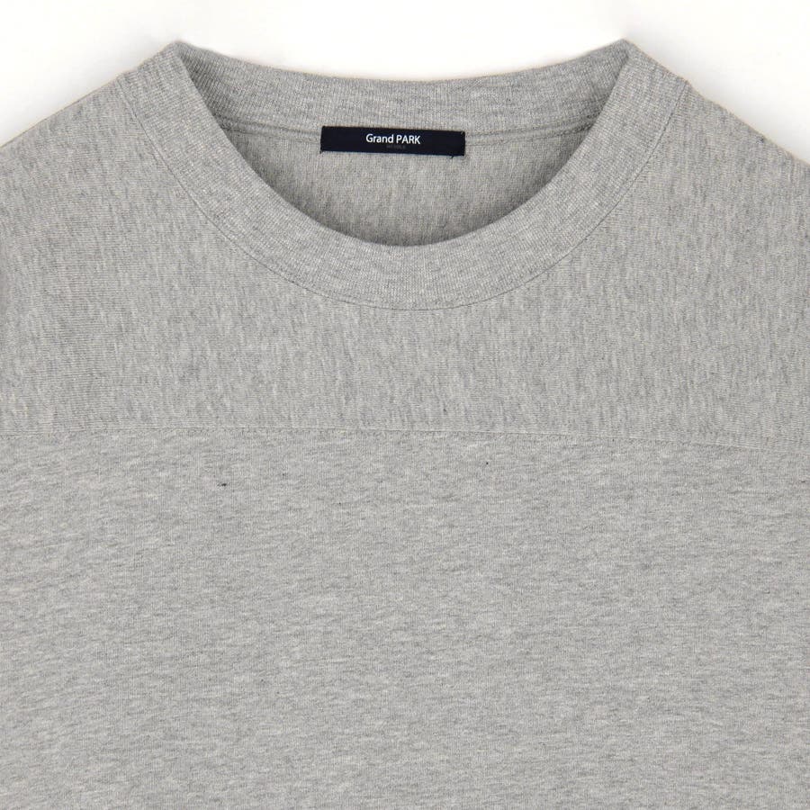ゆったりとしたサイズ感でフットボールTシャツをイメージした切り替えを前後に入れてアクセントにしています。