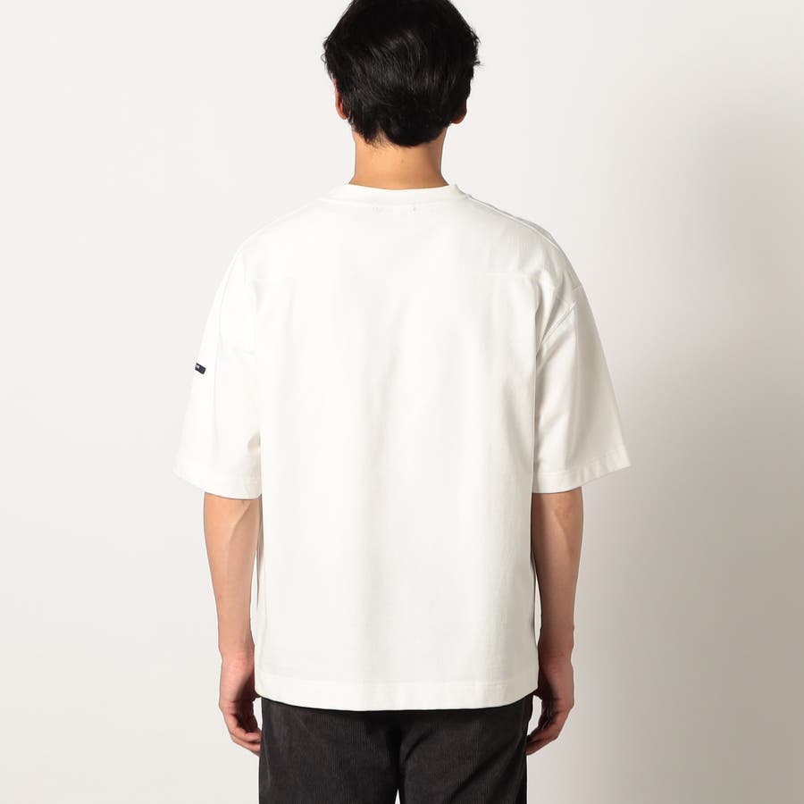 ゆとりのあるサイズ感で生地がしっかりしているのでヘビーウエイトのTシャツのように立体感のあるシルエットになっています。