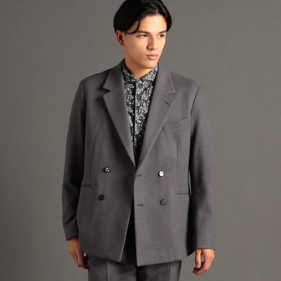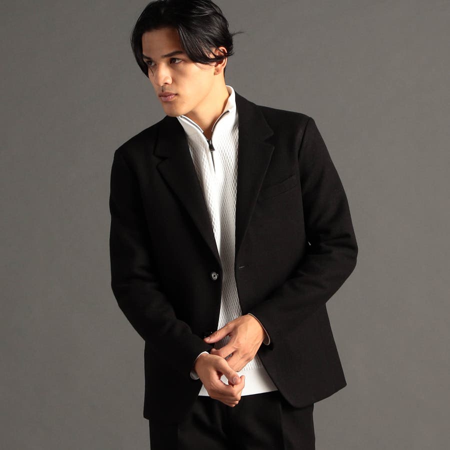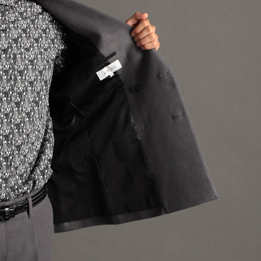 やや低めのゴージラインと広めのノッチドラペルに、スタイリッシュなノーフラップポケットモデルのジャケット。