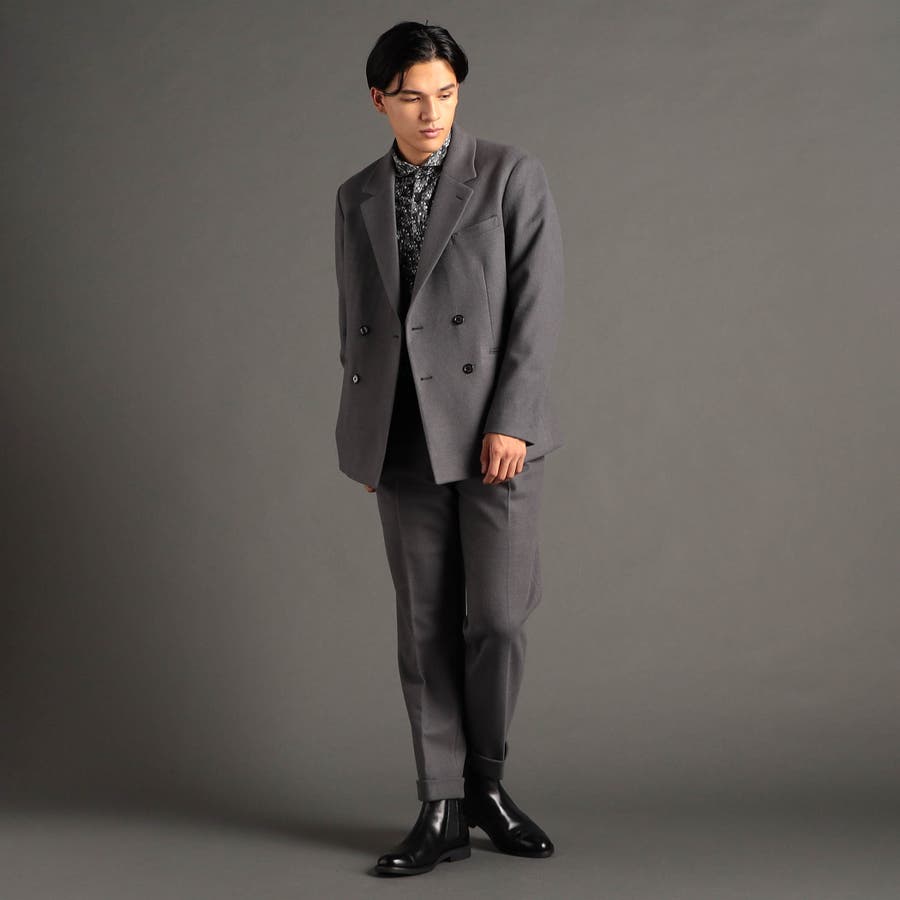 ニューモデルとして、ジャケット+ワイドパンツの冬のセットアップスタイルを提案します。