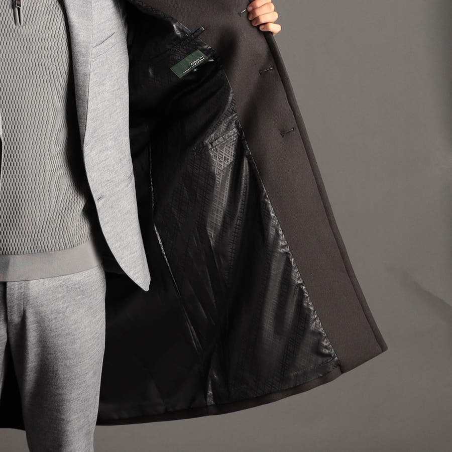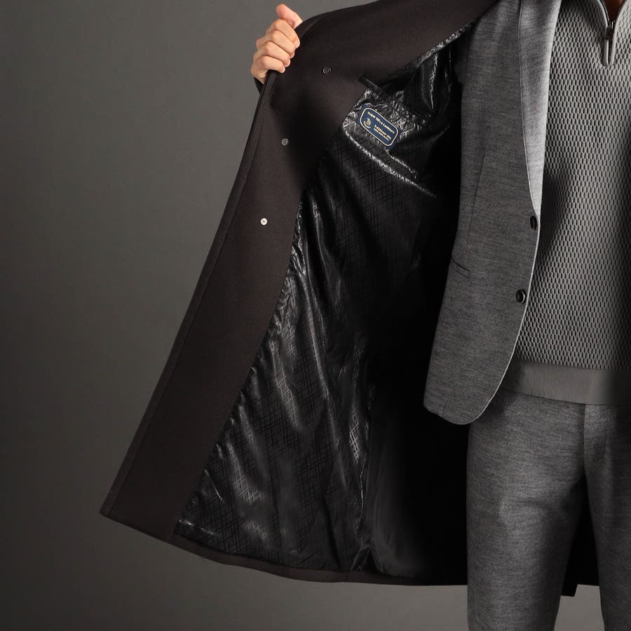 高めのウエストセッティングと、ラグランスリーブで程よくゆとりを持たせた、スーツスタイルにも、ニットとワイドパンツでコーディネートしたカジュアルスタイルにも抜群に合うロングコートです。