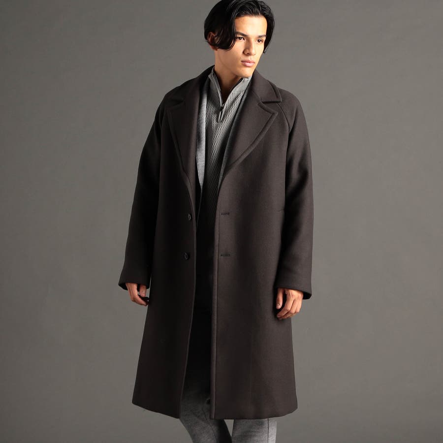 ワイドラペルと、オーバーシルエットのチェスターコート。