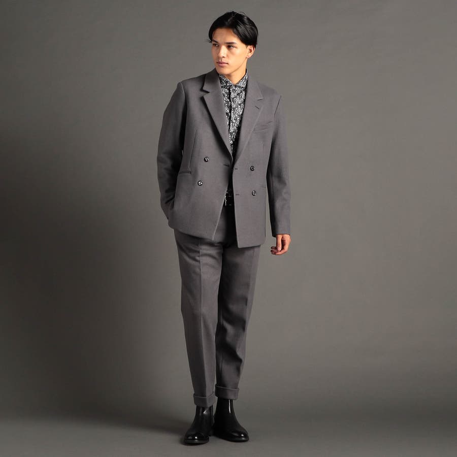 ニューモデルとして、ジャケット+ワイドパンツの冬のセットアップスタイルを提案します。