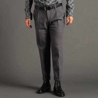ウエストドローコード、1プリーツデザインのワイドパンツ。
