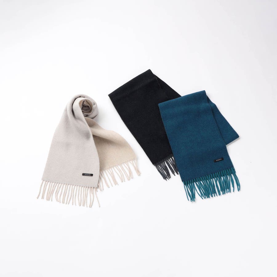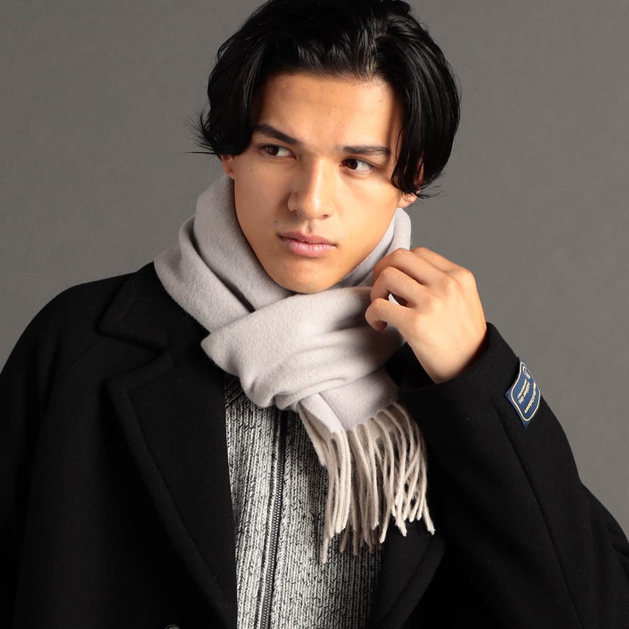 上質ラムウールを使用したヘリンボン柄マフラー。