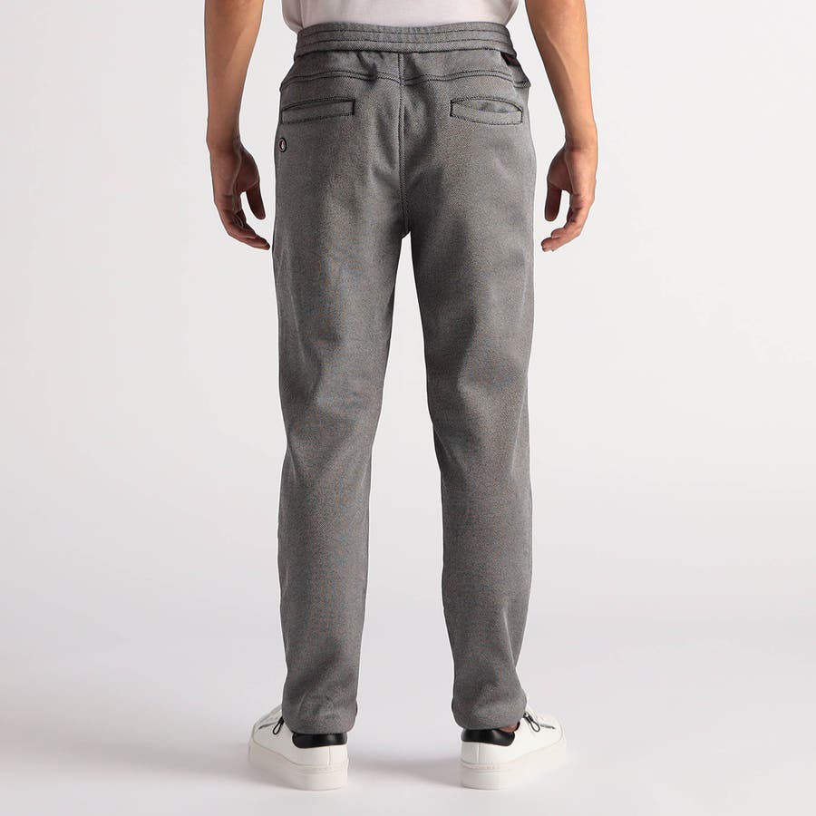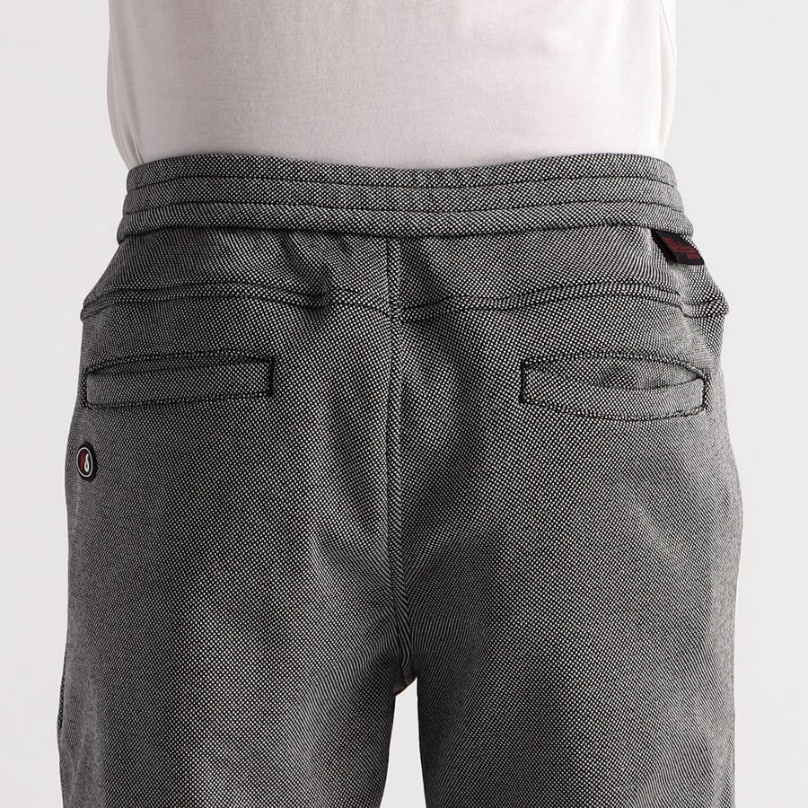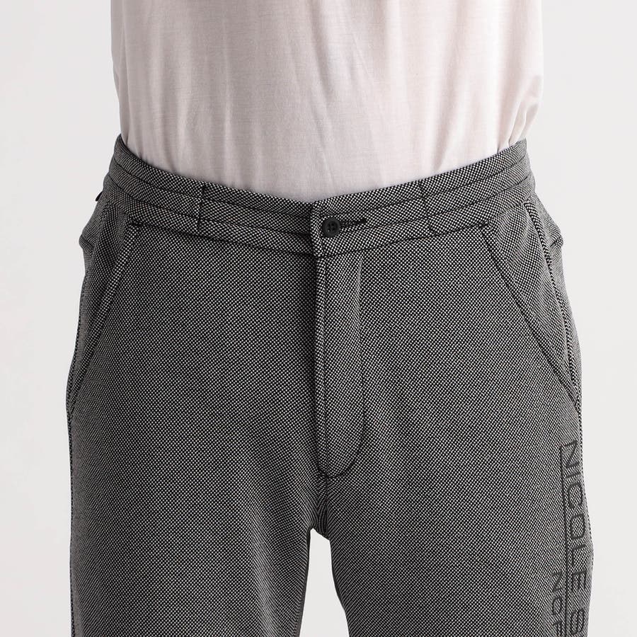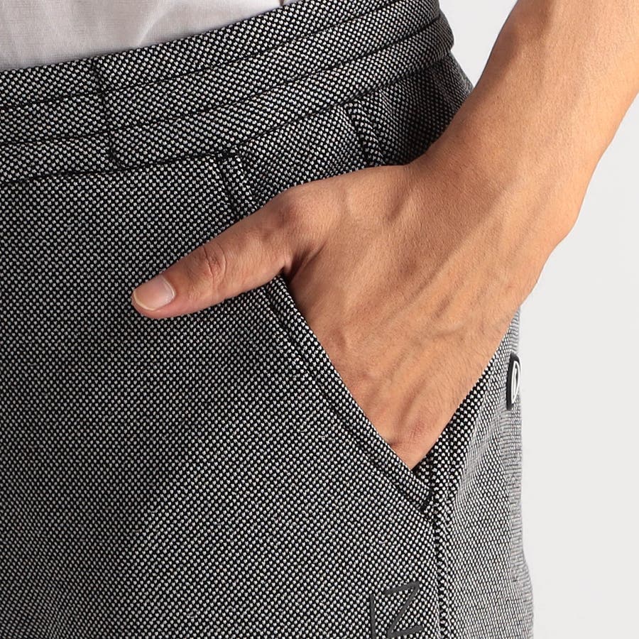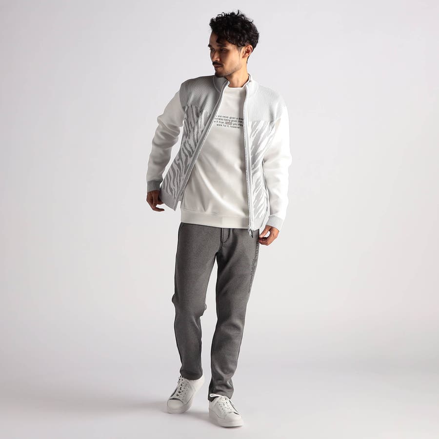 表地には光沢感のあるブライト鹿の子素材を使い、裏に肌触りの良いマイクロファーを貼り合わせたボンディング素材。表裏ともジャージ素材なのでマルチなストレッチ性と、裏面の程良い毛並みのファーはとても気持ち良いです。袋布も肌に当たる部分は共地にしています。キックバックが利いたストレッチ感と光沢感のあるカノコ素材が、高級感のあるジャージパンツに仕上がっています。29グレーは、白と黒をかけ合わせたシャンブレー調の見え方です。49ブラックは、無地のまっ黒ですが、鹿の子織のオウトツに光沢感が高級感ある雰囲気を出します。