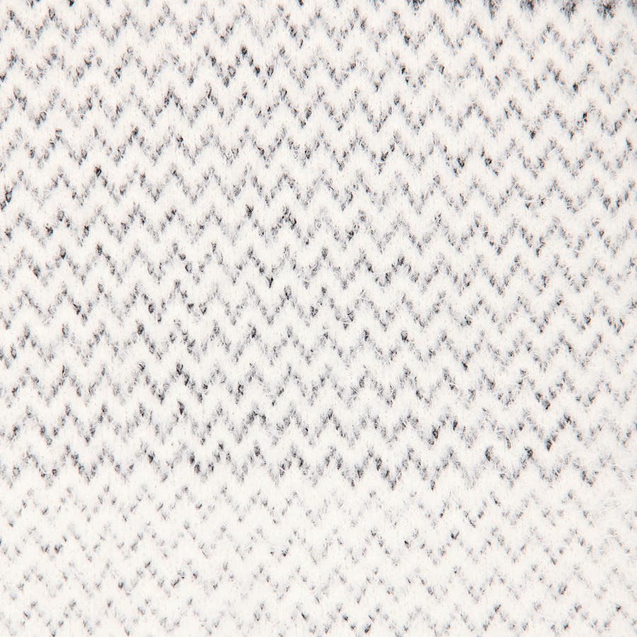 しなやかで柔らかい肌触りのハイゲージ用ナイロンモール糸と、柄部分にはラメ糸を使用して上品な光沢をもつラグジュアリー感を表現しました。見た目は毛足が長くファーのようなフワフワした印象ですが、芯の部分がラッセルテープなので毛抜けもしづらいです。