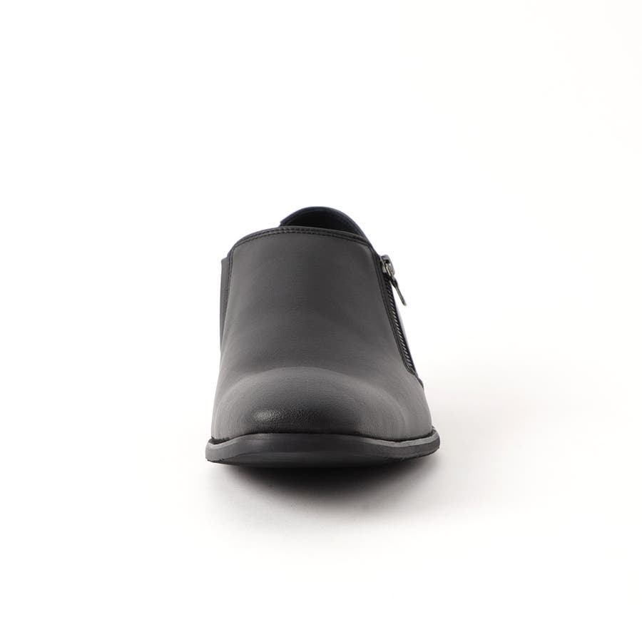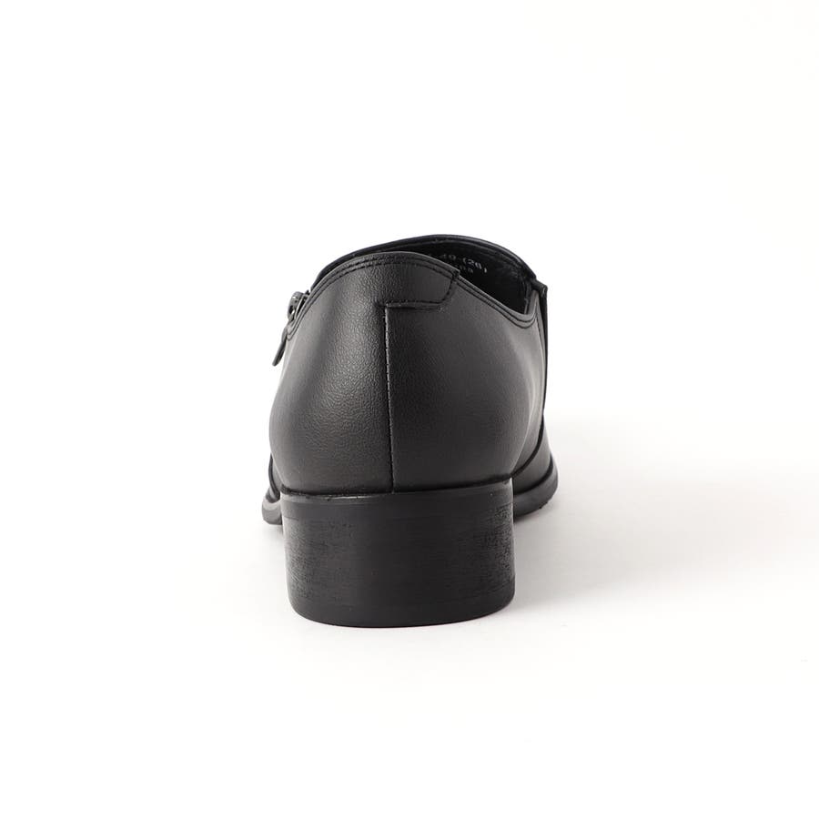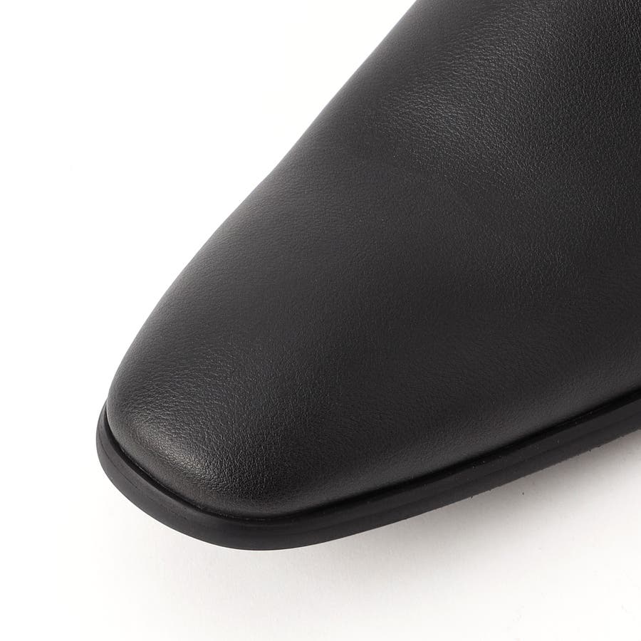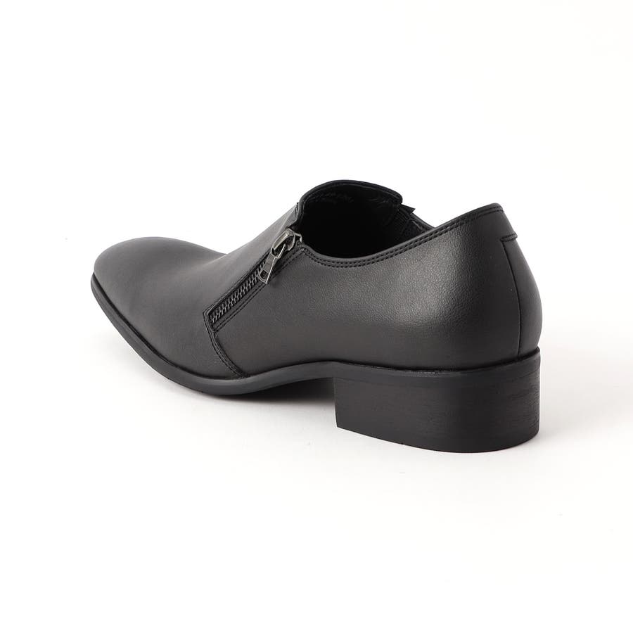 独特なシャープなラストのスリッポンシューズ。少し細長く、トゥスプリングの利いた木型(ラスト)をベースに、ブーツに使われる高いヒールのソールを採用し、サイドファスナー仕様で履きやすく、大人モードなシューズに仕上げています。履き口のラインもこだわって作っています。