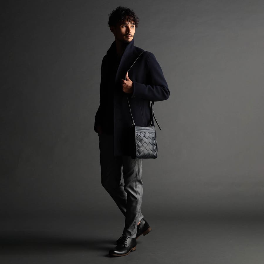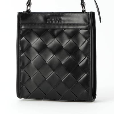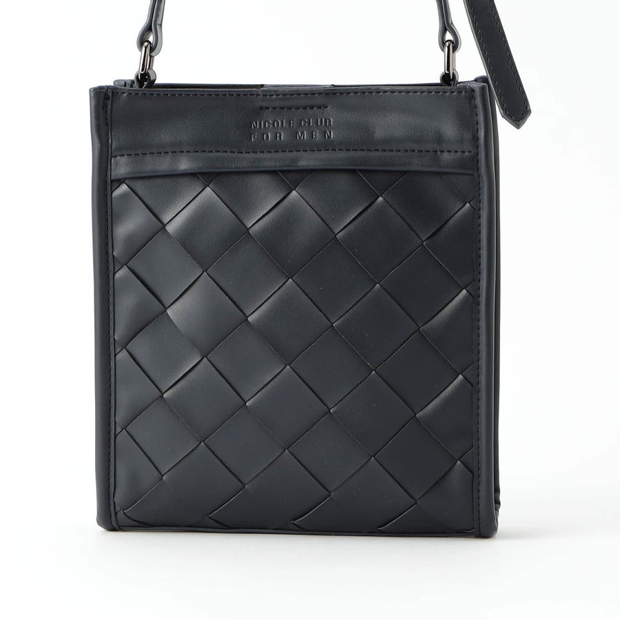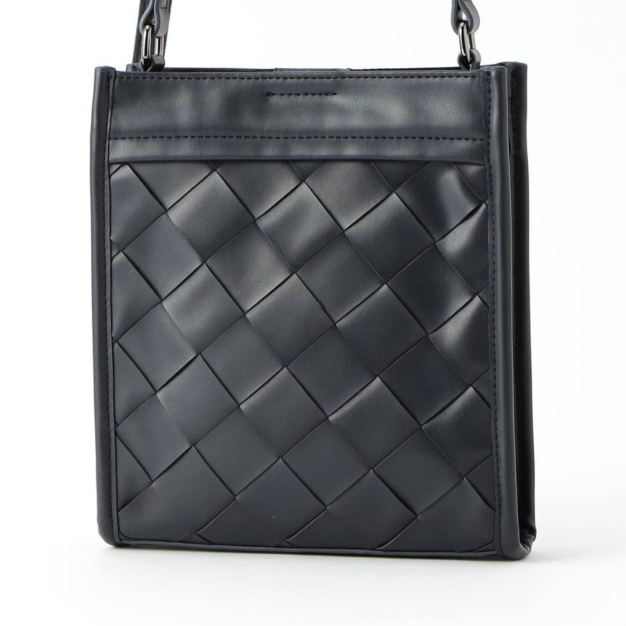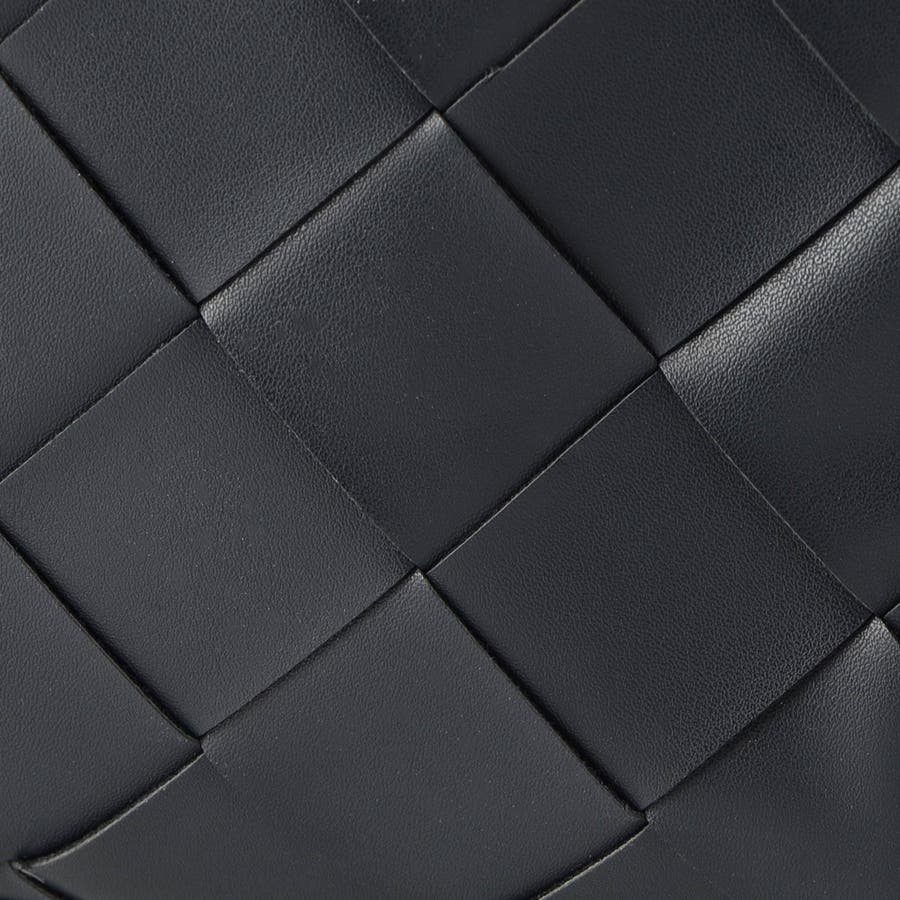 本体部分にツヤ感のある合皮素材を贅沢に編み込んだ、高級感溢れるスクエア型ショルダーバッグ。側面は編み込みなしのフラットな仕様にすることで、見た目にメリハリをプラス。メインポケットはマグネット仕様、内装にはパッチポケットを設けて使い勝手も高めています。モードな装いにもピッタリのシックな印象に仕上げました。