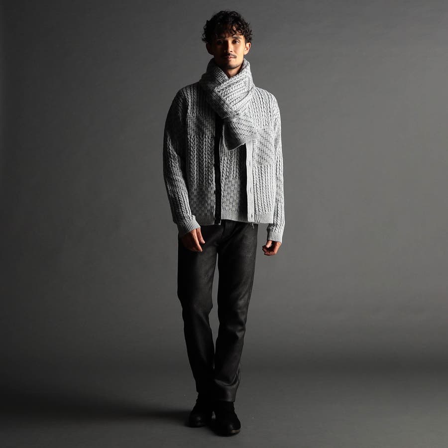 プルオーバーニット(メーカー品番:4564-6001/4564-6300)同素材同編地企画です。ポリエステル糸を使用している為、軽く、さらりと巻いただけでサマになる存在感抜群のストールに仕上がっています。