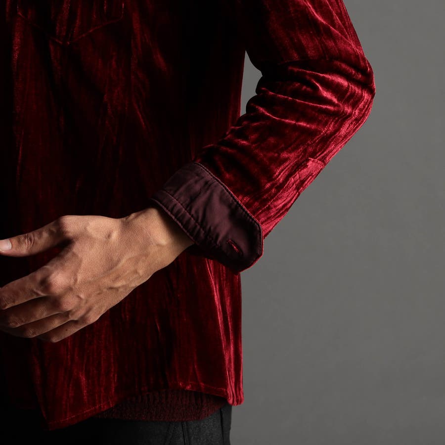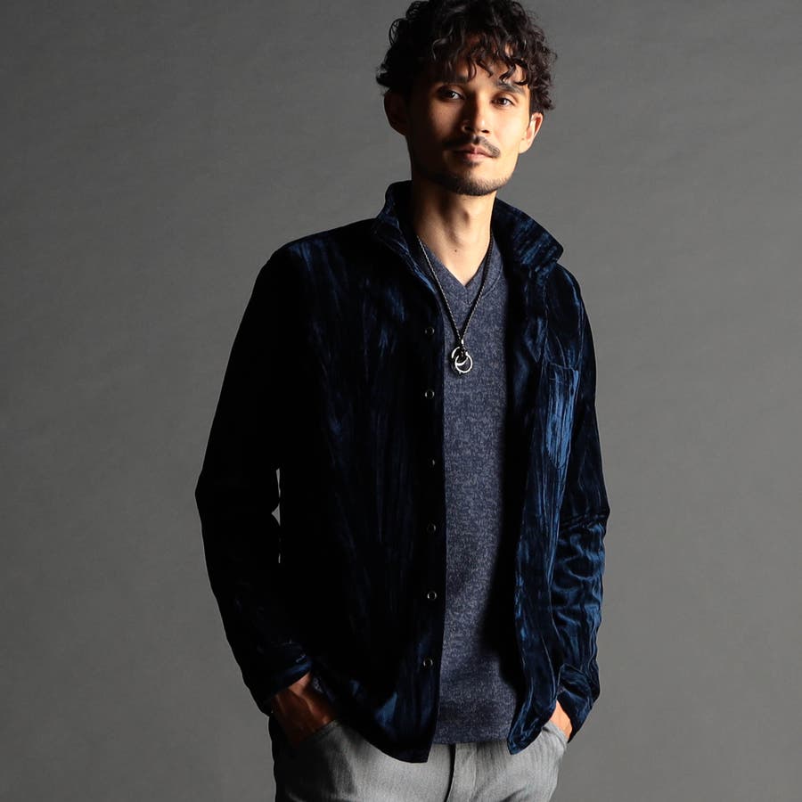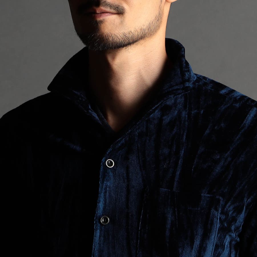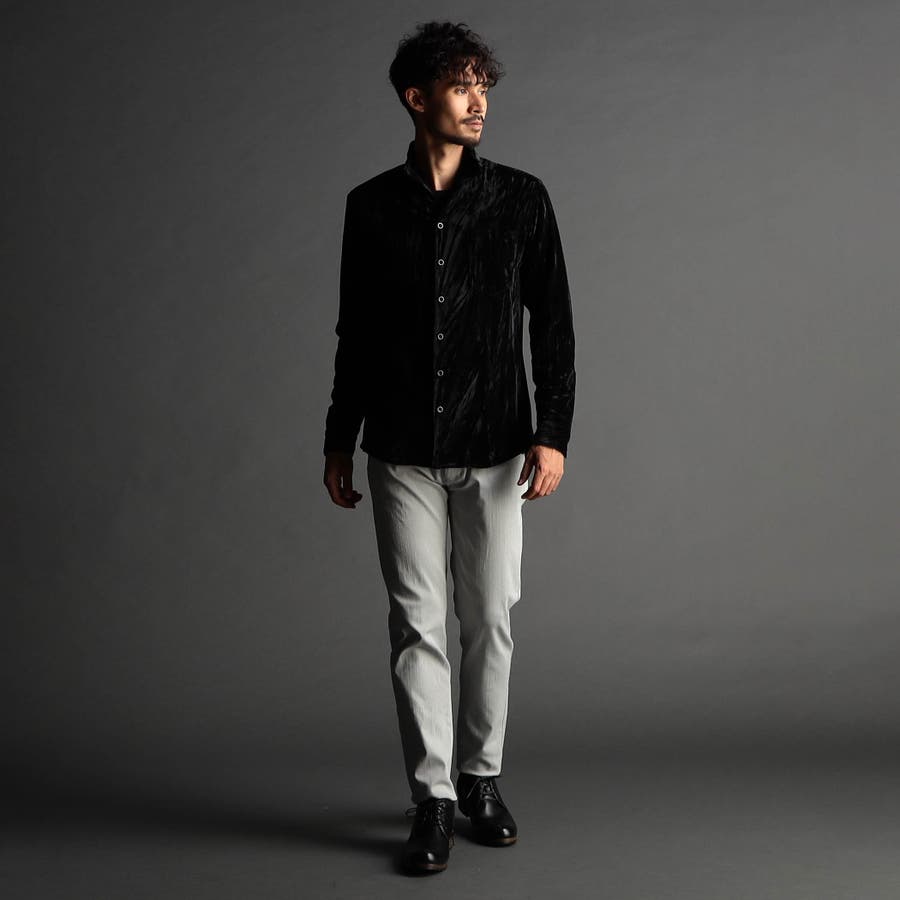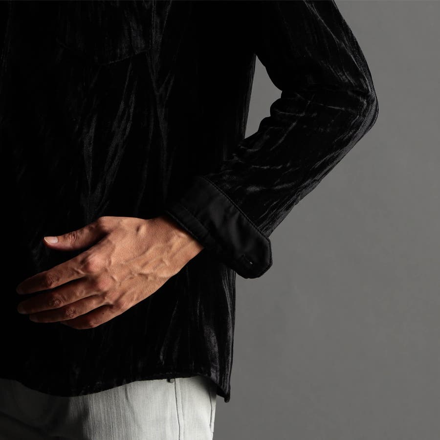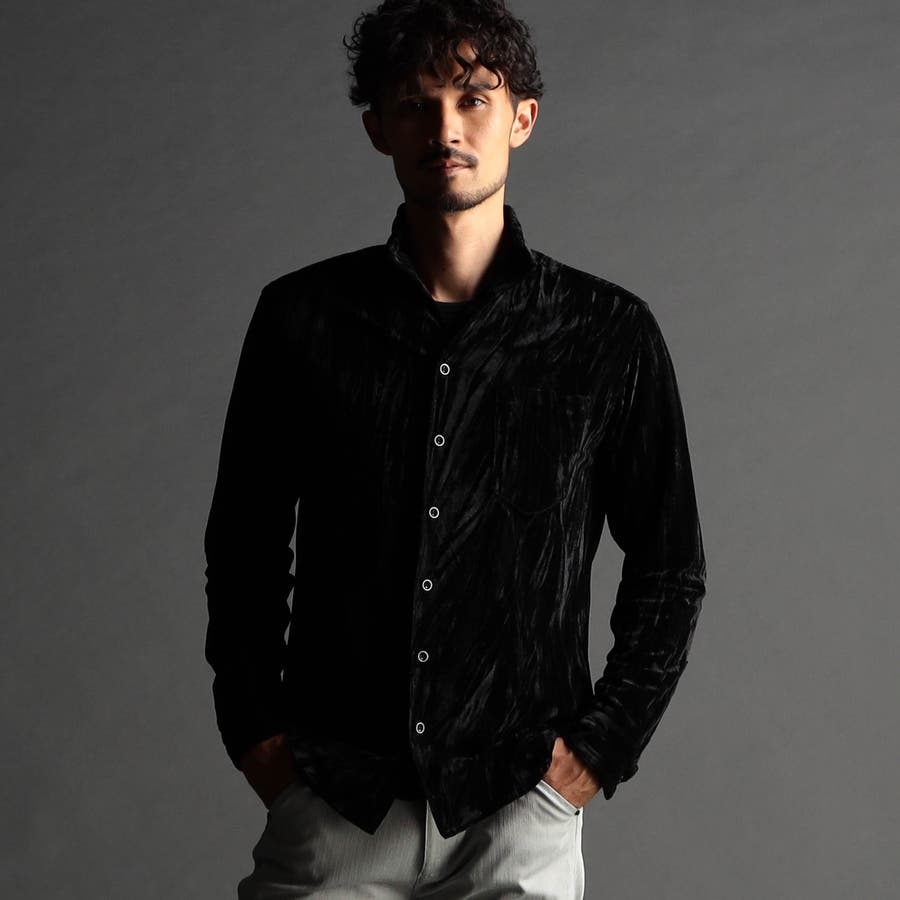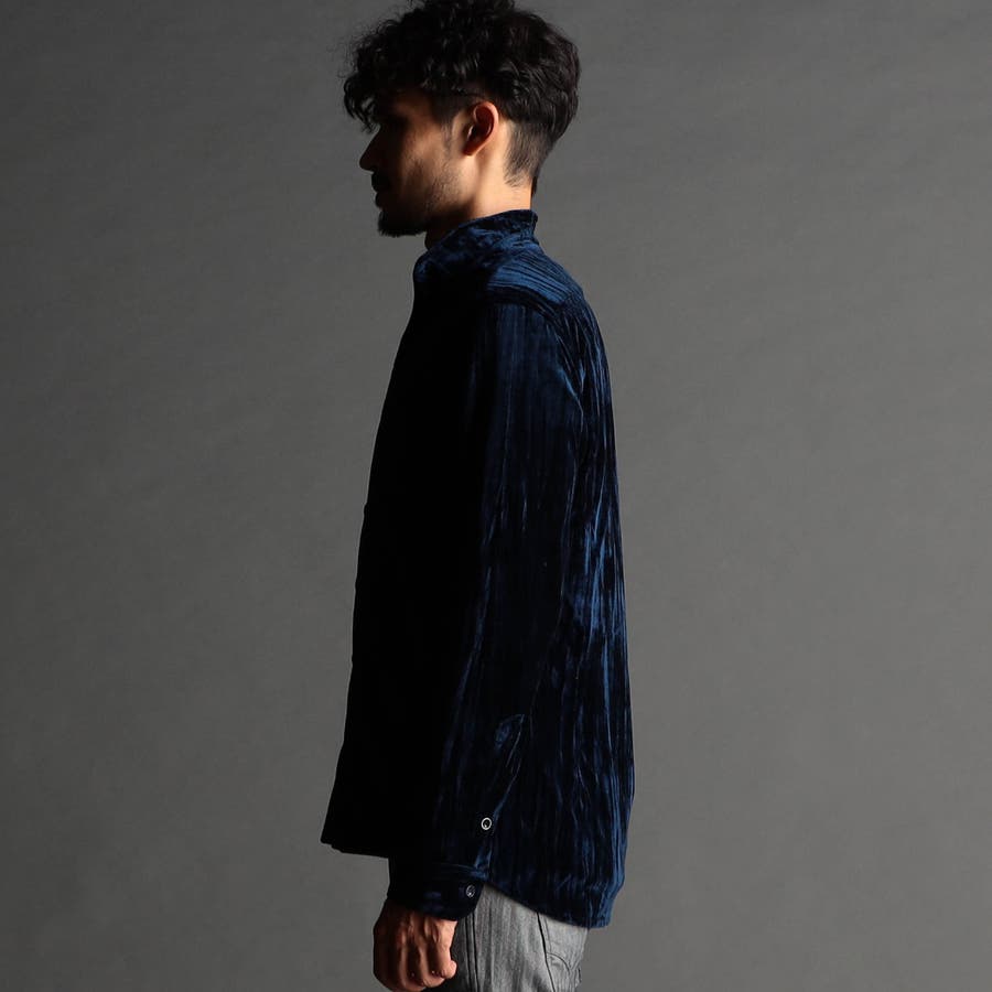 ストレッチプリーツベロア スタンドシャツ