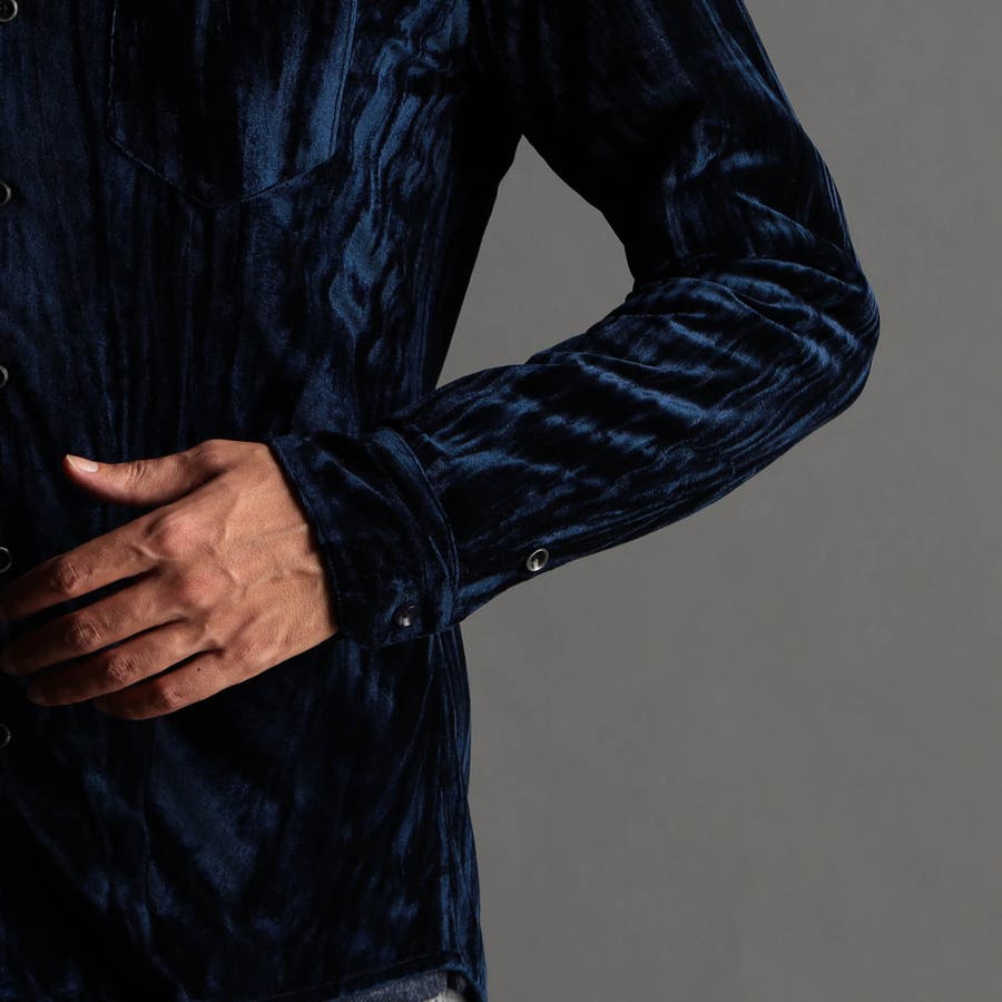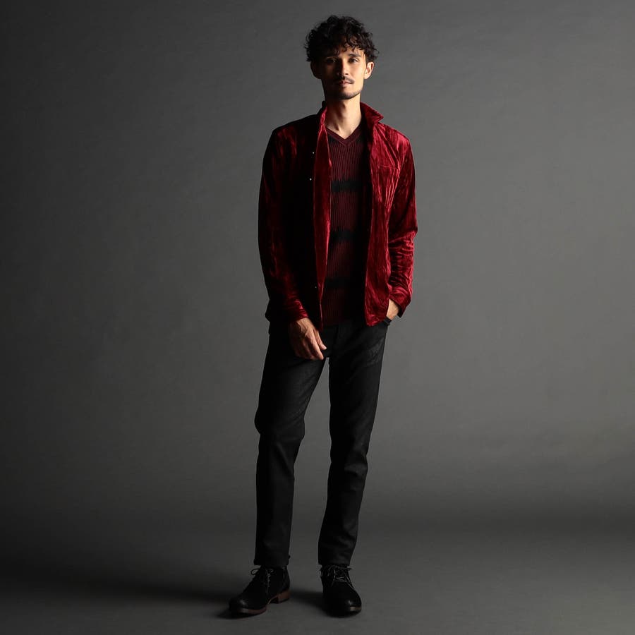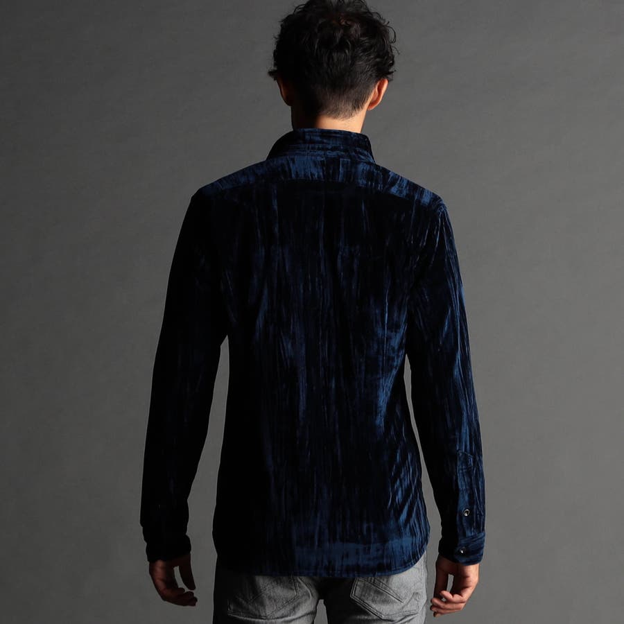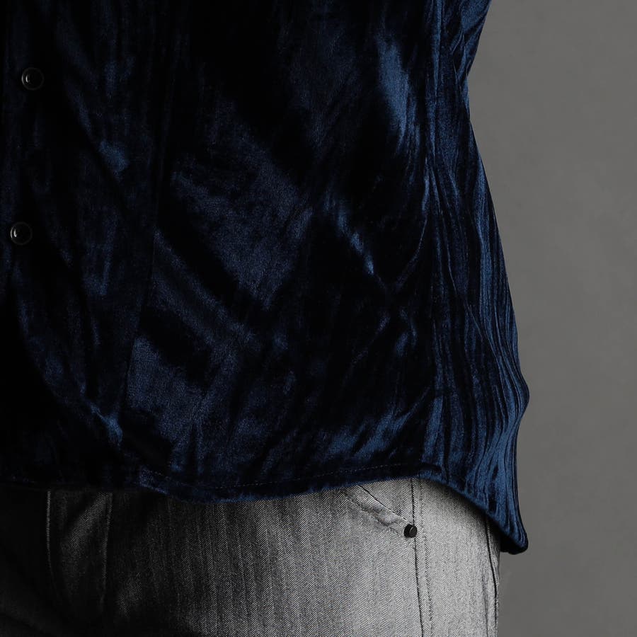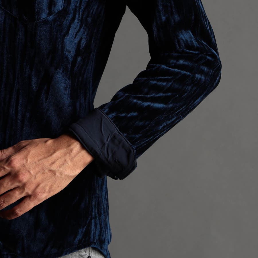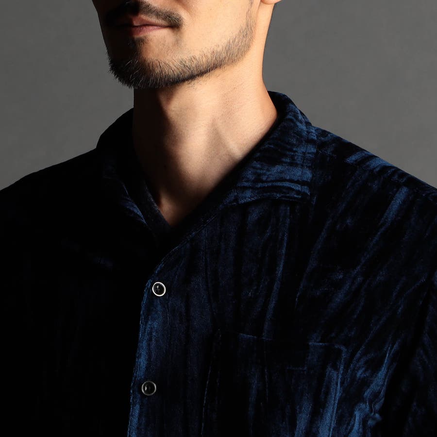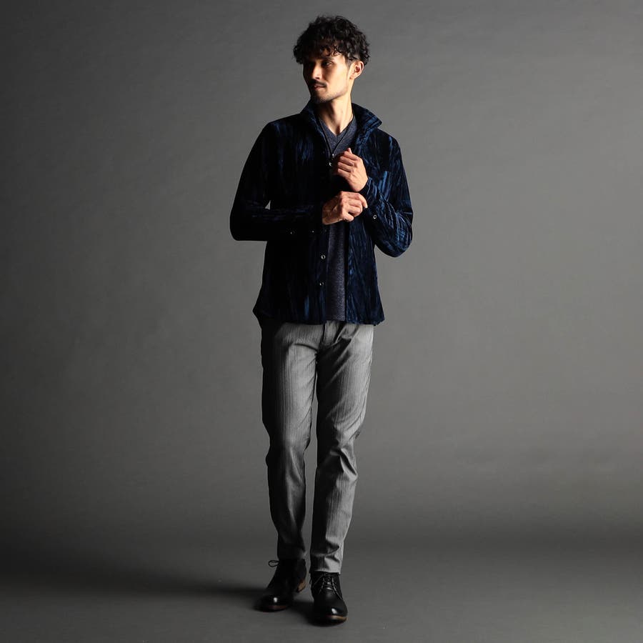 ストレッチプリーツベロア スタンドシャツ