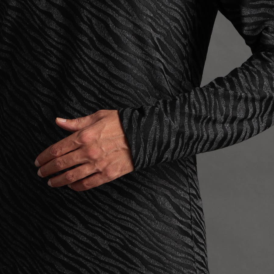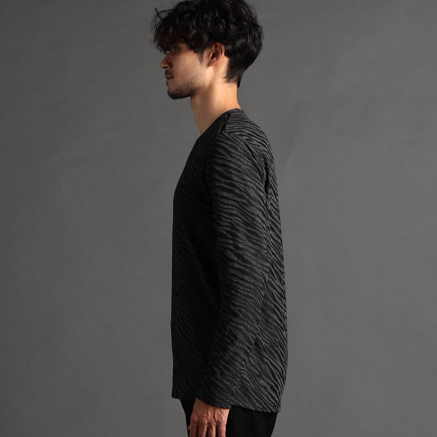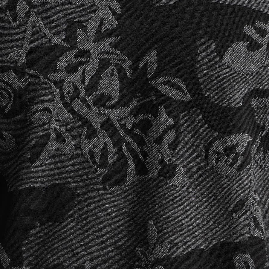 立体感のあるゼブラ柄とフラワー柄をリンクスジャカードで表現。糸染めによる発色の良さと両面微起毛加工によるウォーム感が特徴。