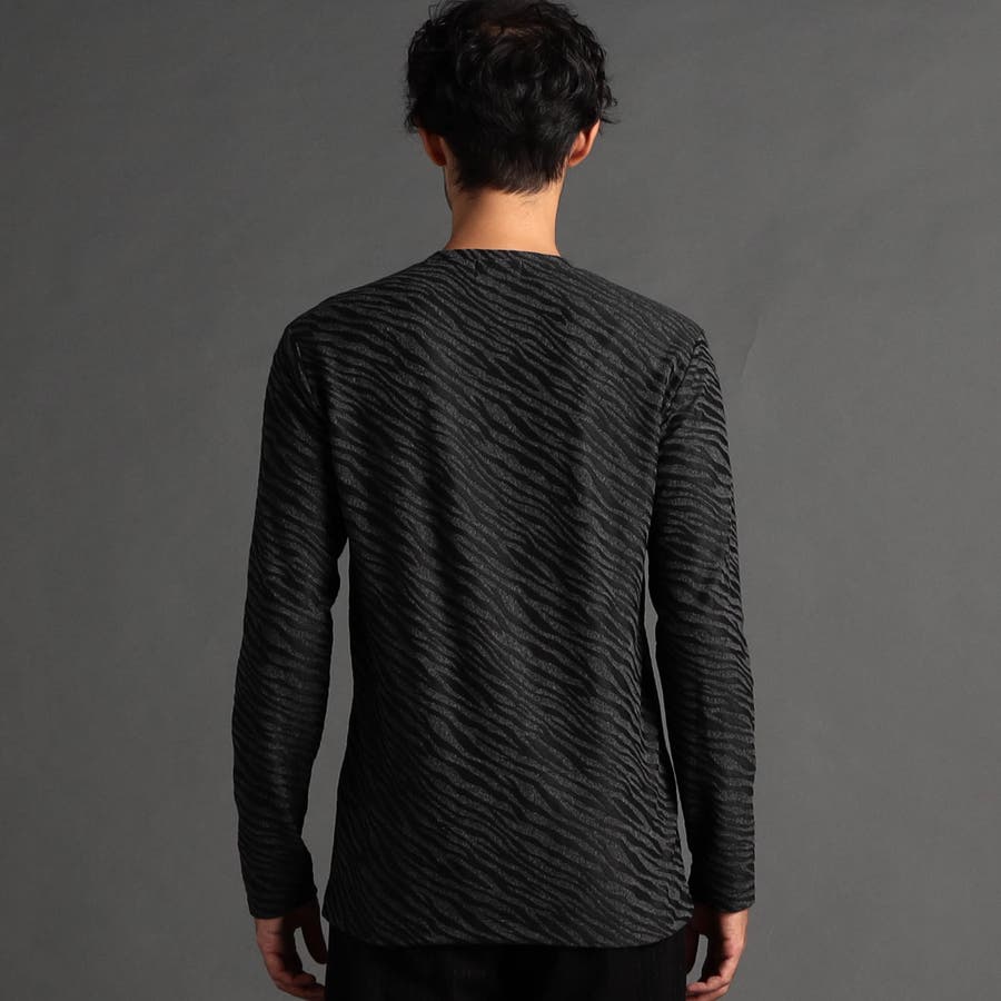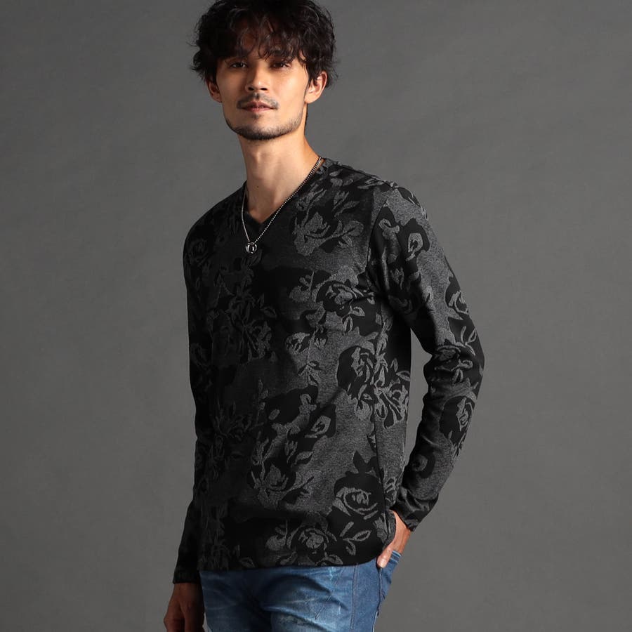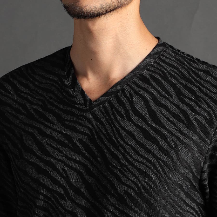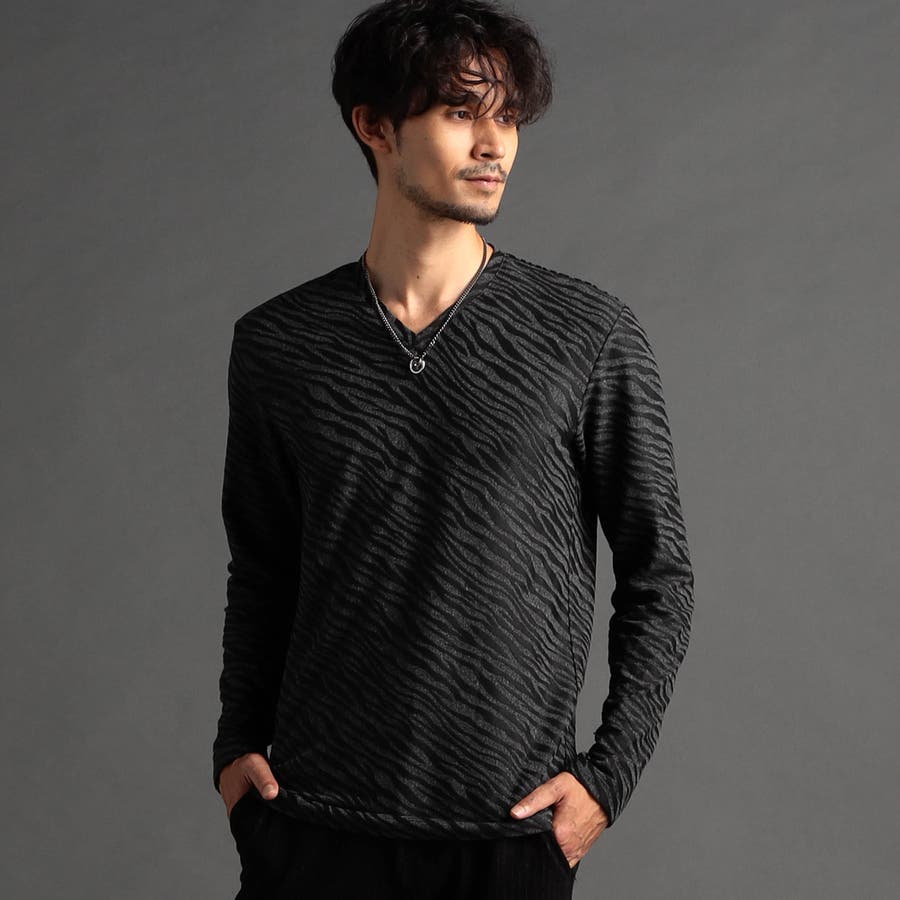 艶っぽい素材感にマッチしたシンプルなVネック。やや細身のシャープなシルエットで展開します。