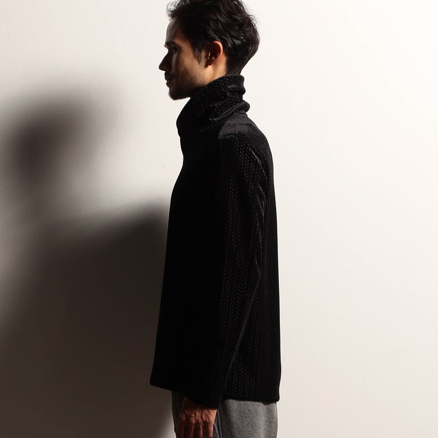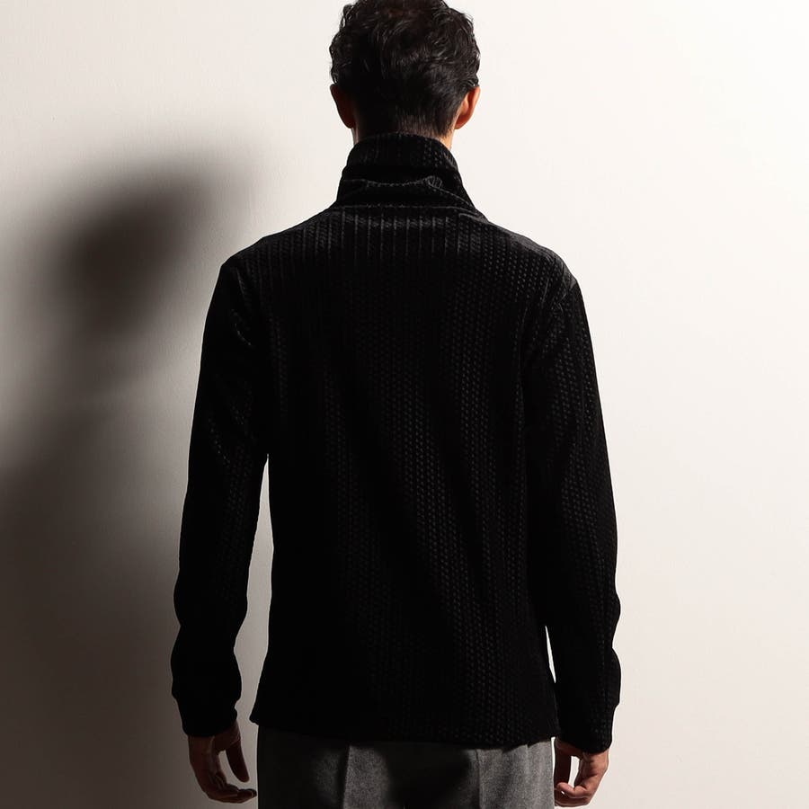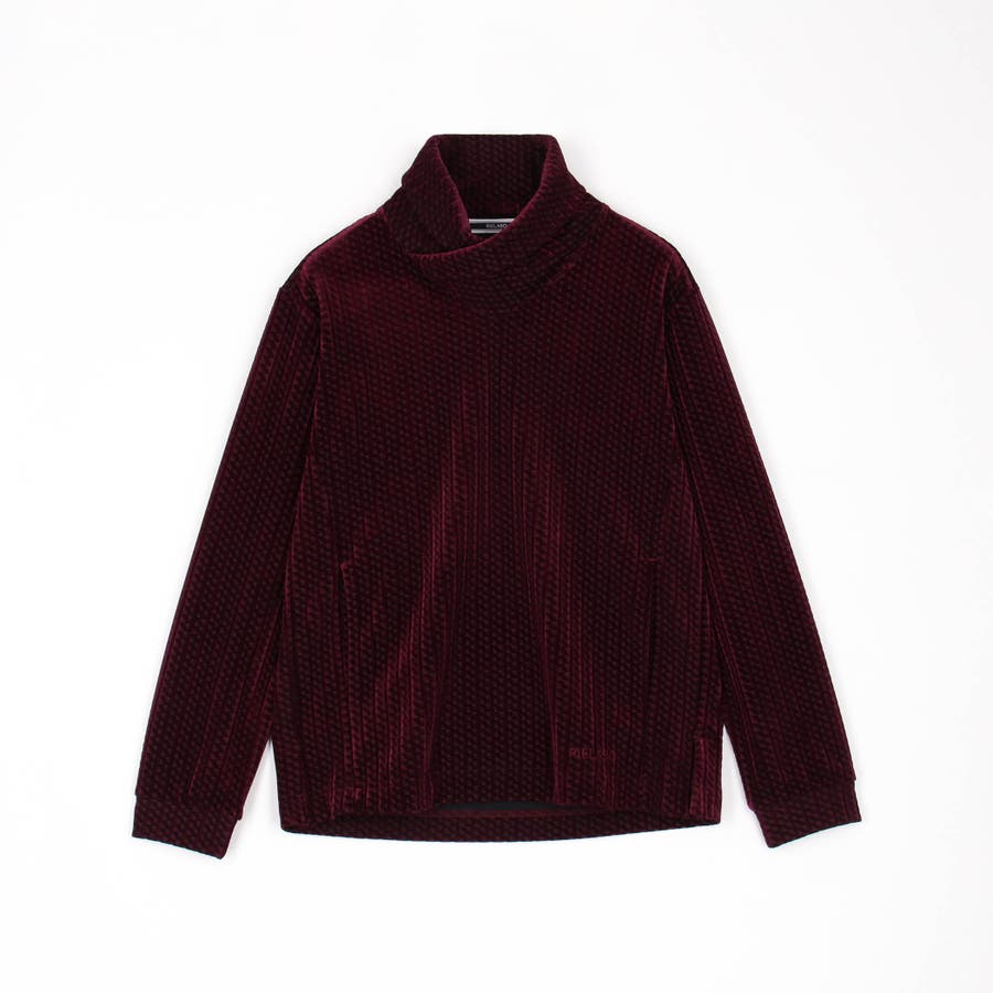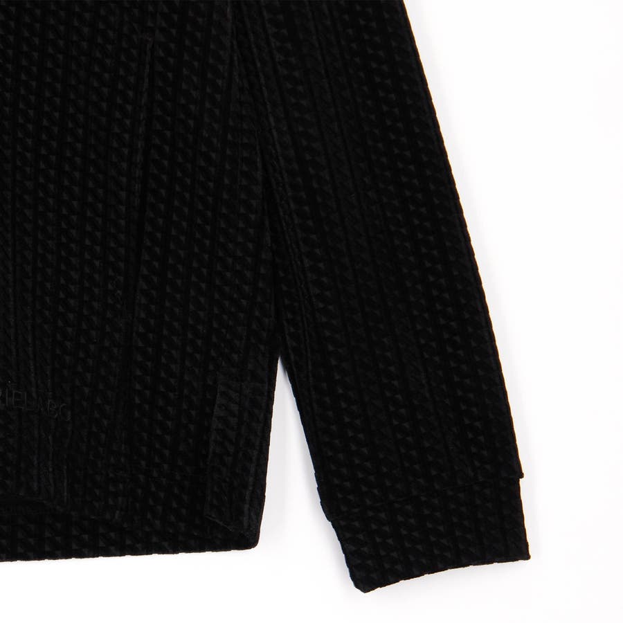 ウェーブ調の見え方をする幾何学柄ベロア素材にポリエステルトリコット素材をボンディング(貼り合わせ)した素材を採用。冬素材らしい肉厚感と温かみのある風合いが特長です。