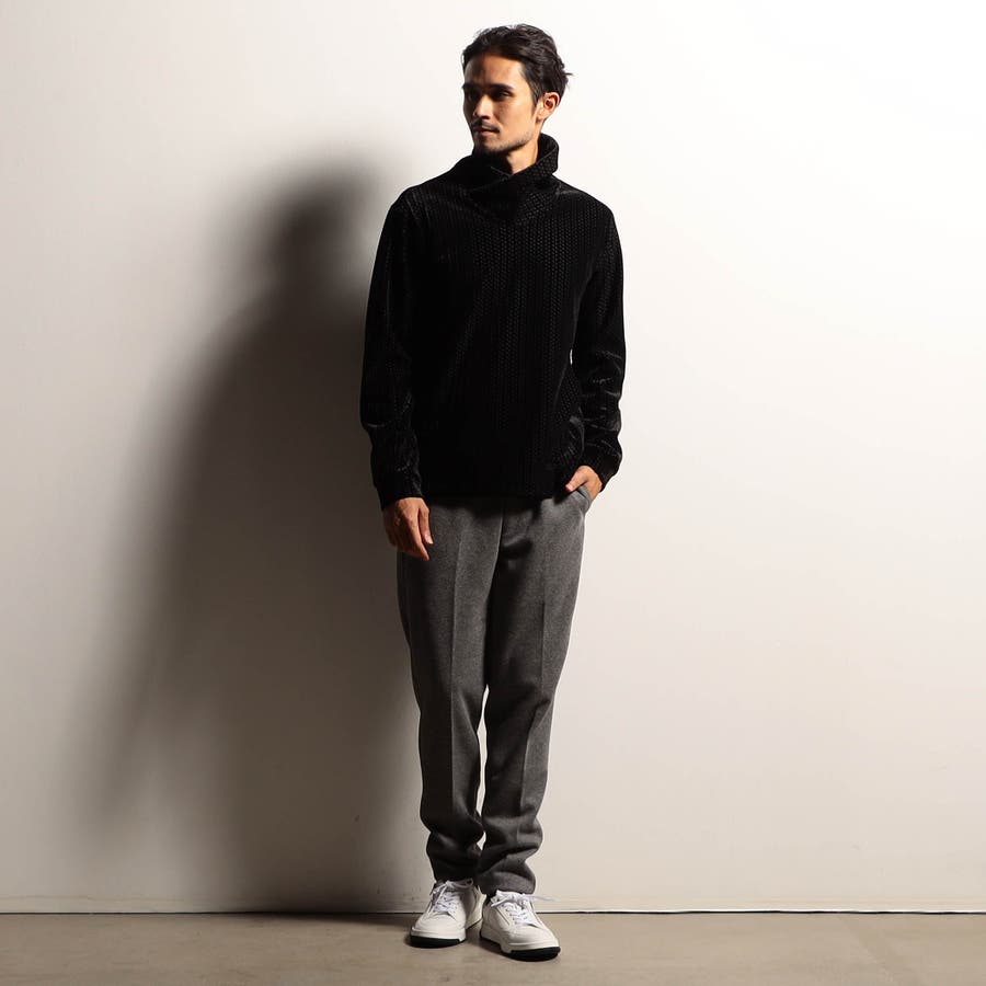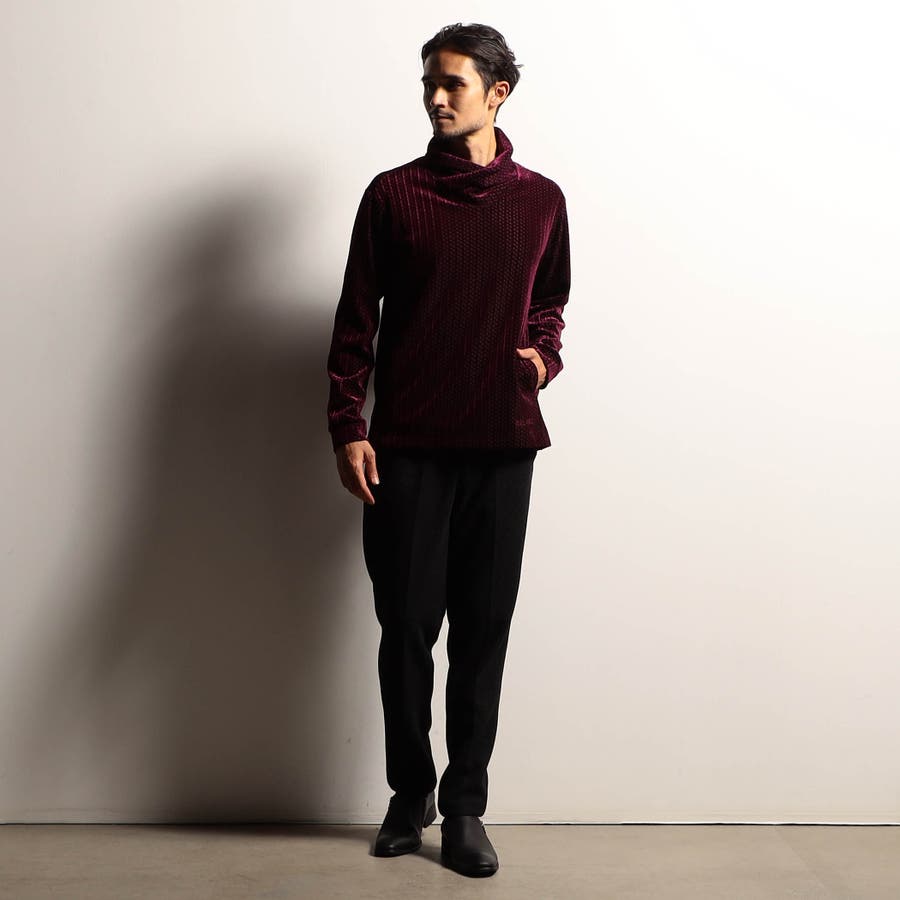 ベロア素材特有の光沢感がドレッシーな雰囲気漂うショールカラープルオーバー。ボンディング加工を施すことで生地の肉厚感を増し、トレーナー感覚で着用できます。脇にはスラッシュのカンガルーポケットを作り、脇の縫代部分にはデオドラントテープを入れる事で機能性も追加しています。
