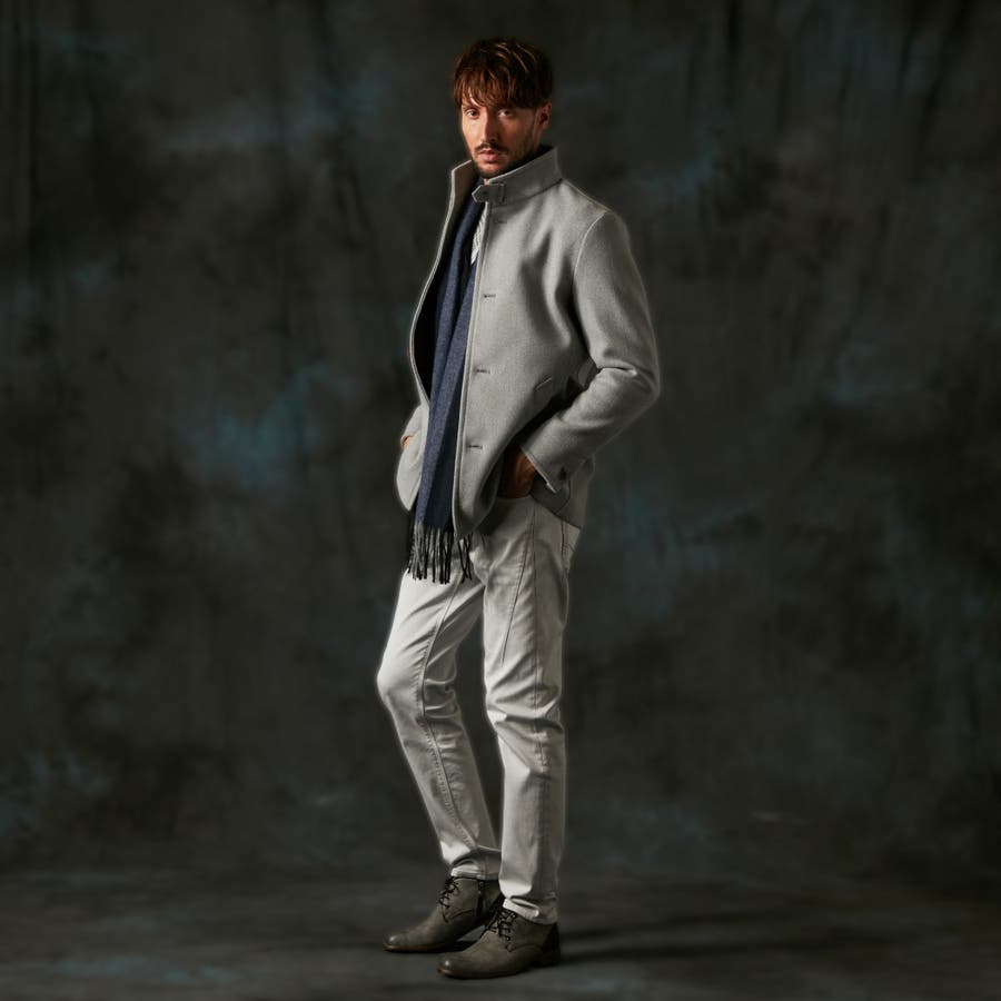 ストレッチメルトンスタンドミドルコート