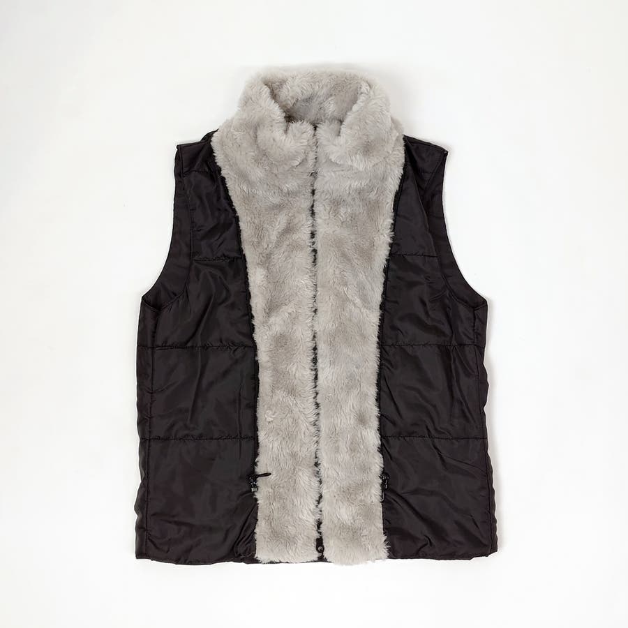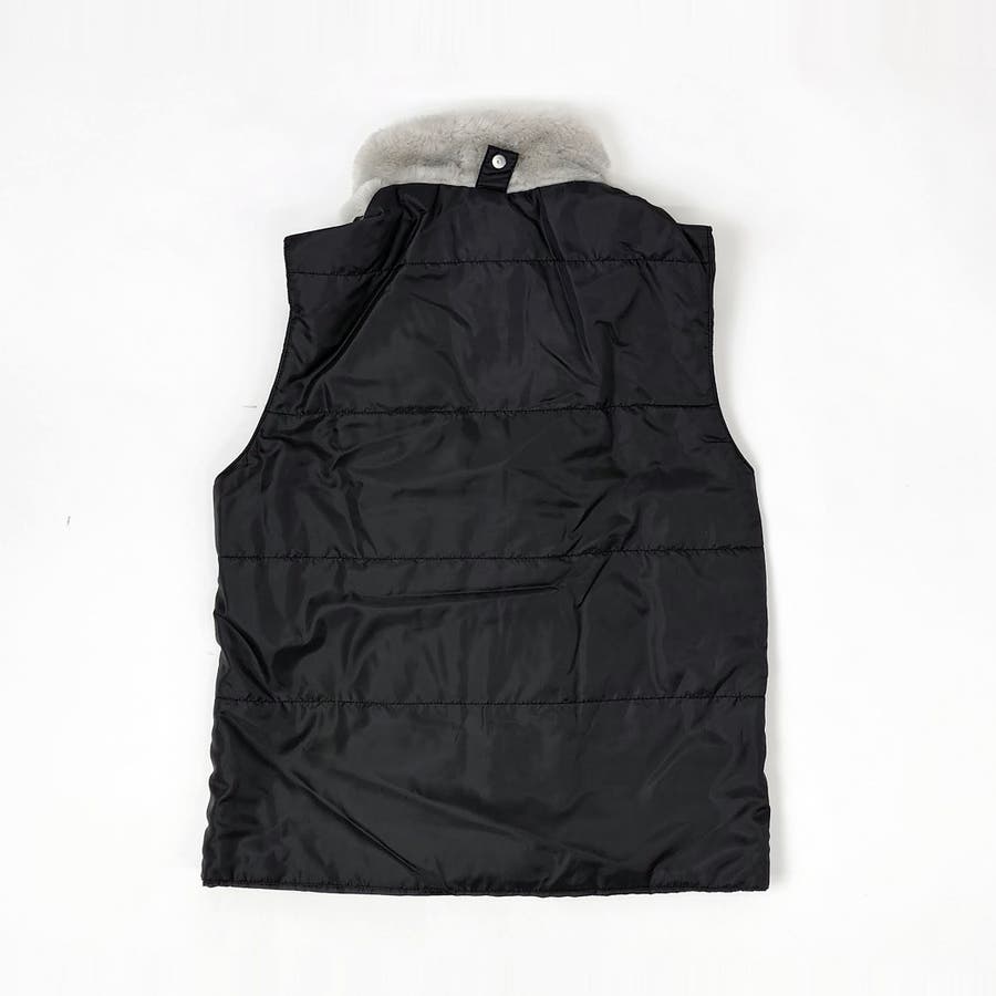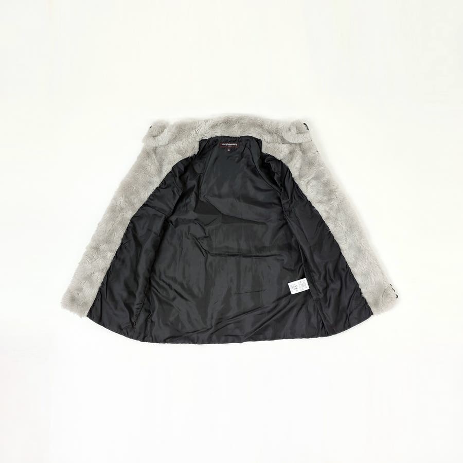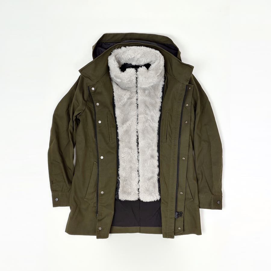 前端部分にファーの付いた中綿ベストライナー付きの総裏ミリタリーコート。