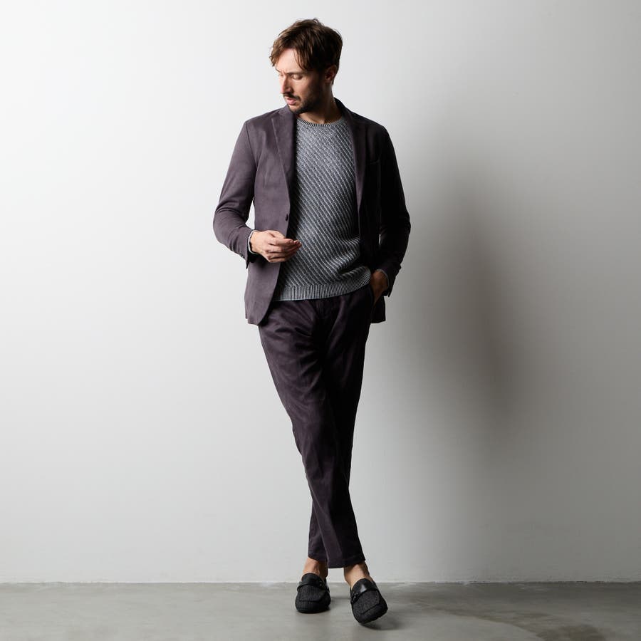 同素材でジャケット「メーカー品番4565-3533」を展開しておりますので、セットアップでのスタイリングもおすすめです。