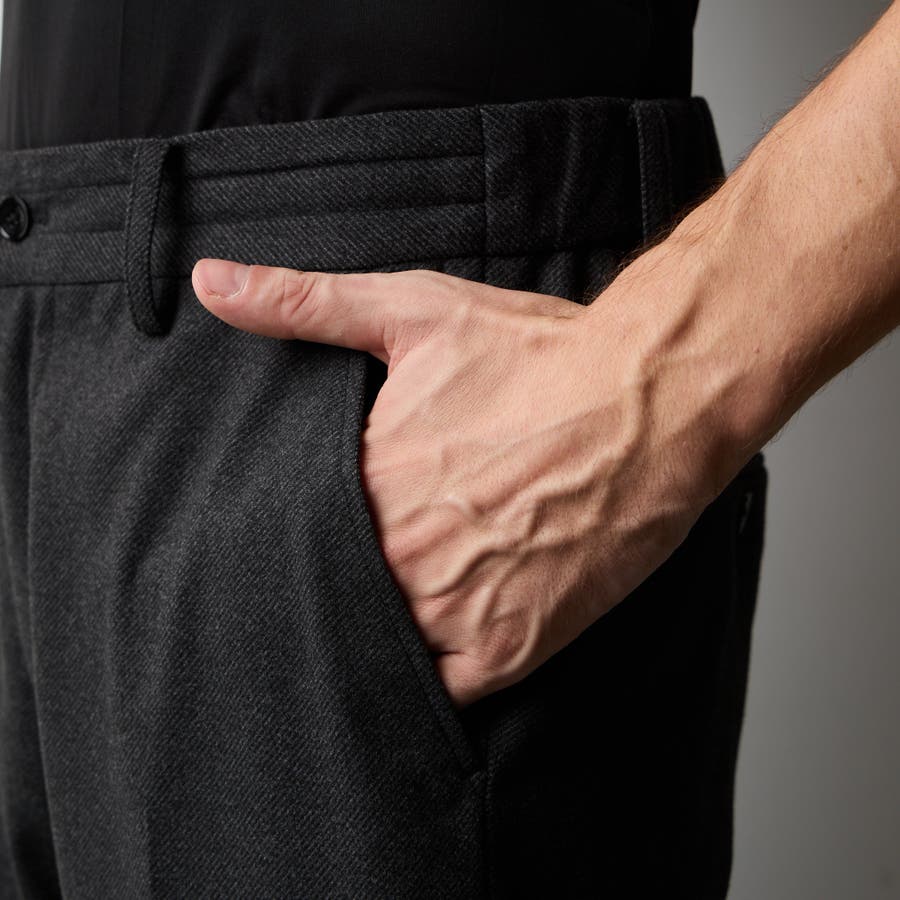ウールの様な厚みがありながら軽い着心地で、ポリエステルの張り感が仕立て映えする素材です。