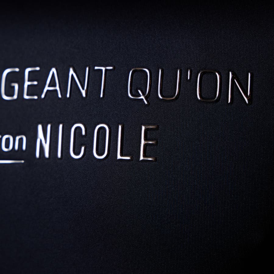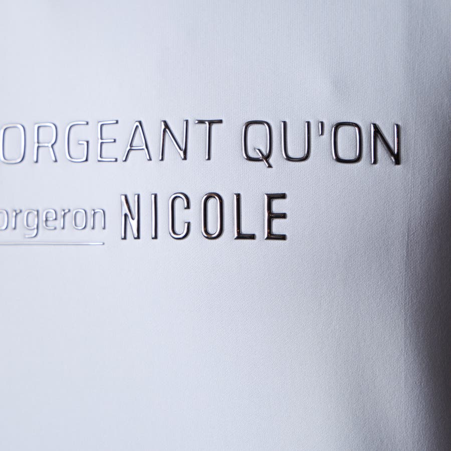 生地の光沢と立体的なメタルジェルプリントの相性も良く、高級感のあるTシャツに仕上がりました。
