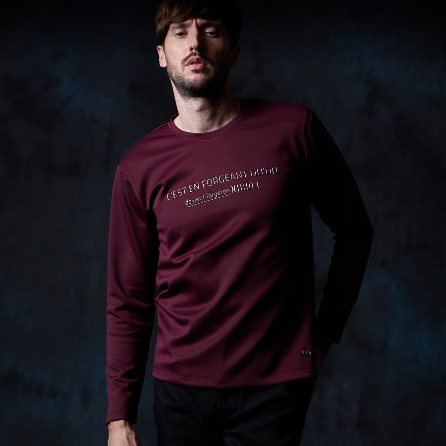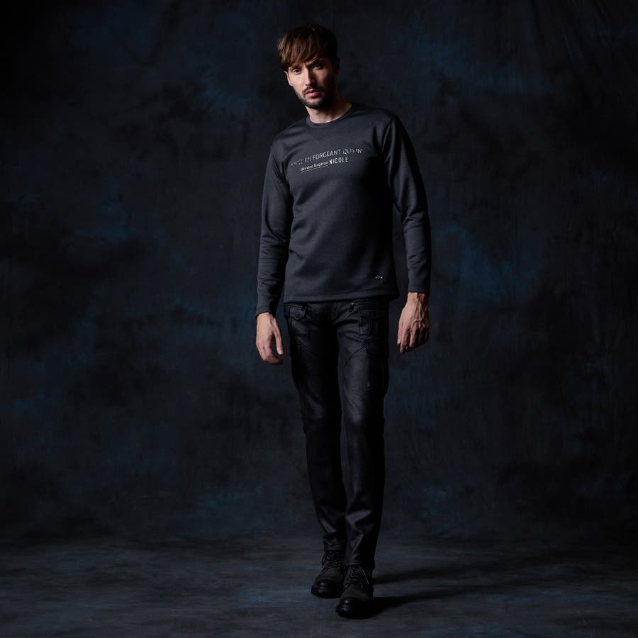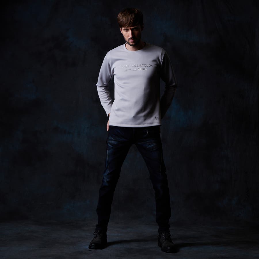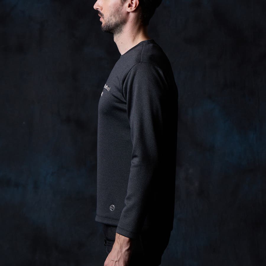 シャープな印象をあたえるメタルジェルプリントが特徴のクルーネック長袖Tシャツになります。