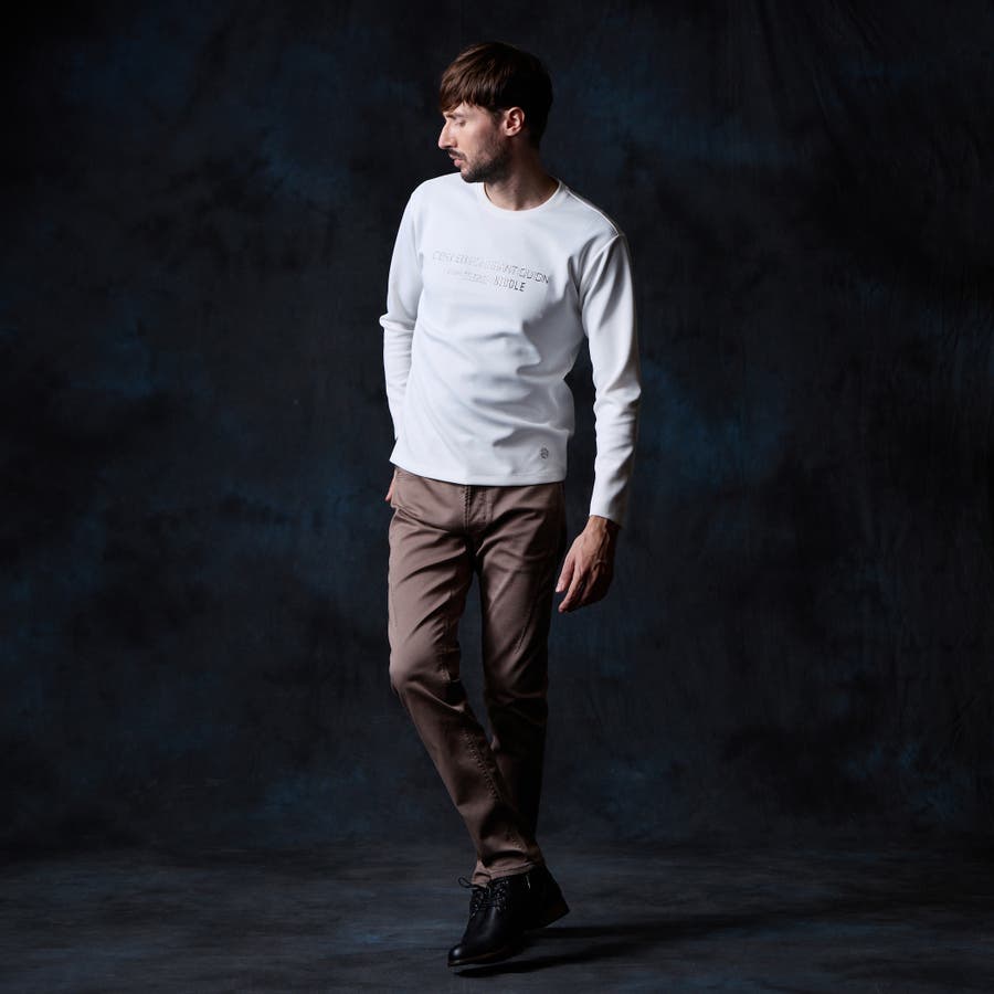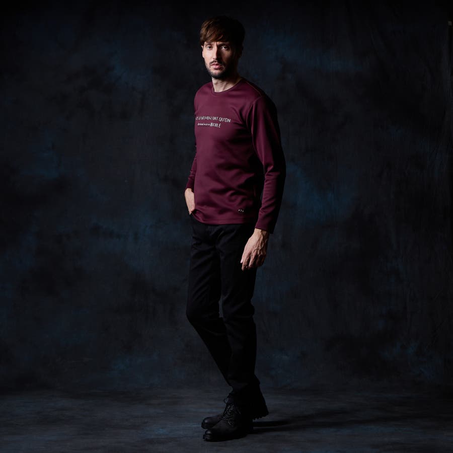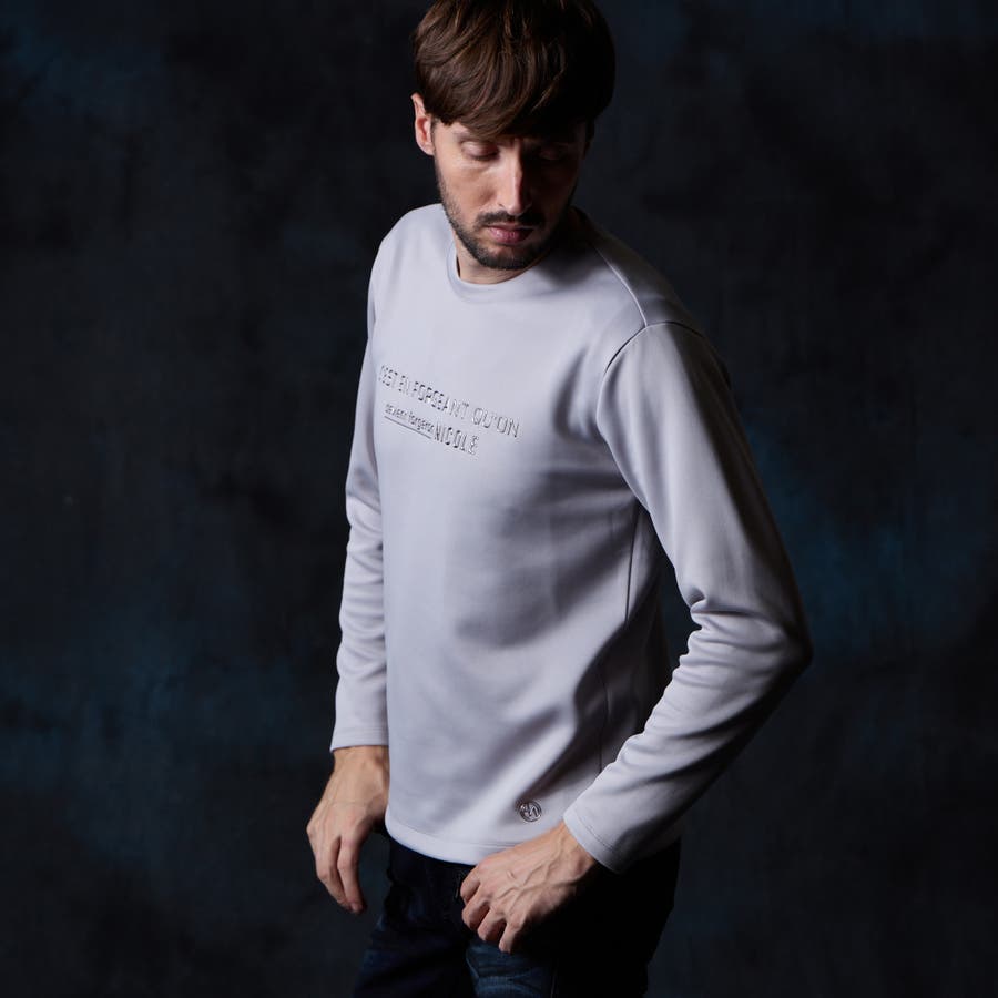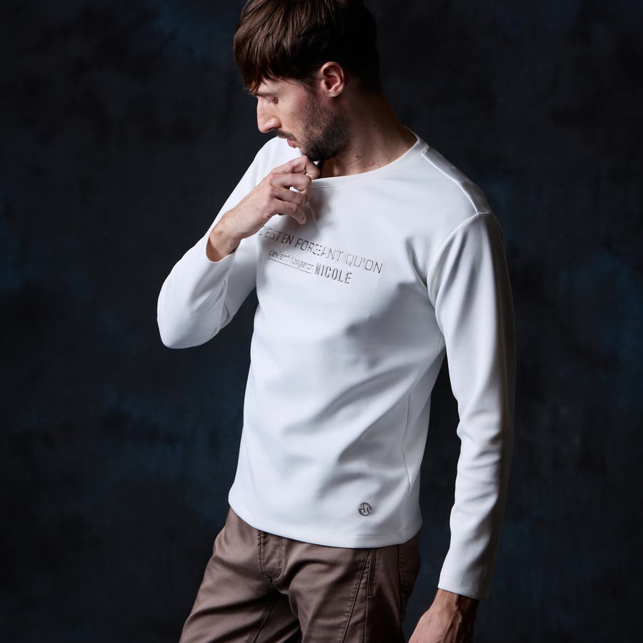 シャープな印象をあたえるメタルジェルプリントが特徴のクルーネック長袖Tシャツになります。