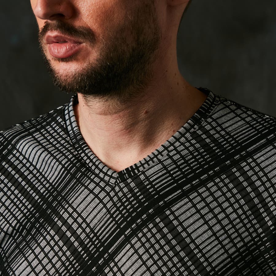 ポリエステルのサラッとした風合いと凹凸のある編地が快適な着心地です。