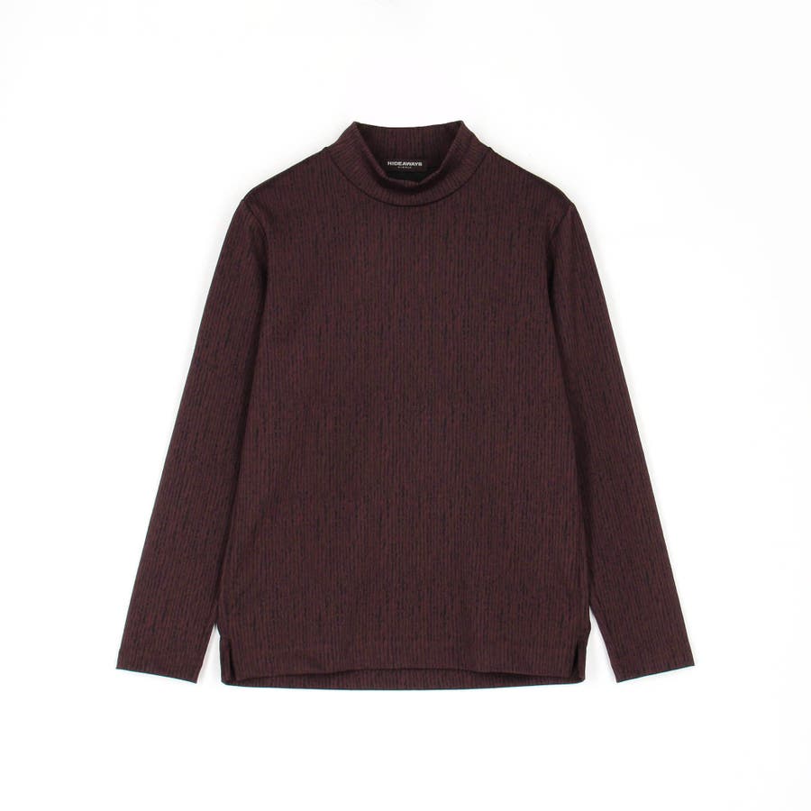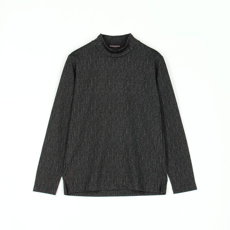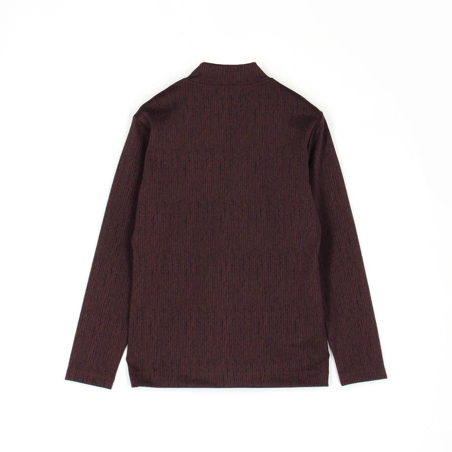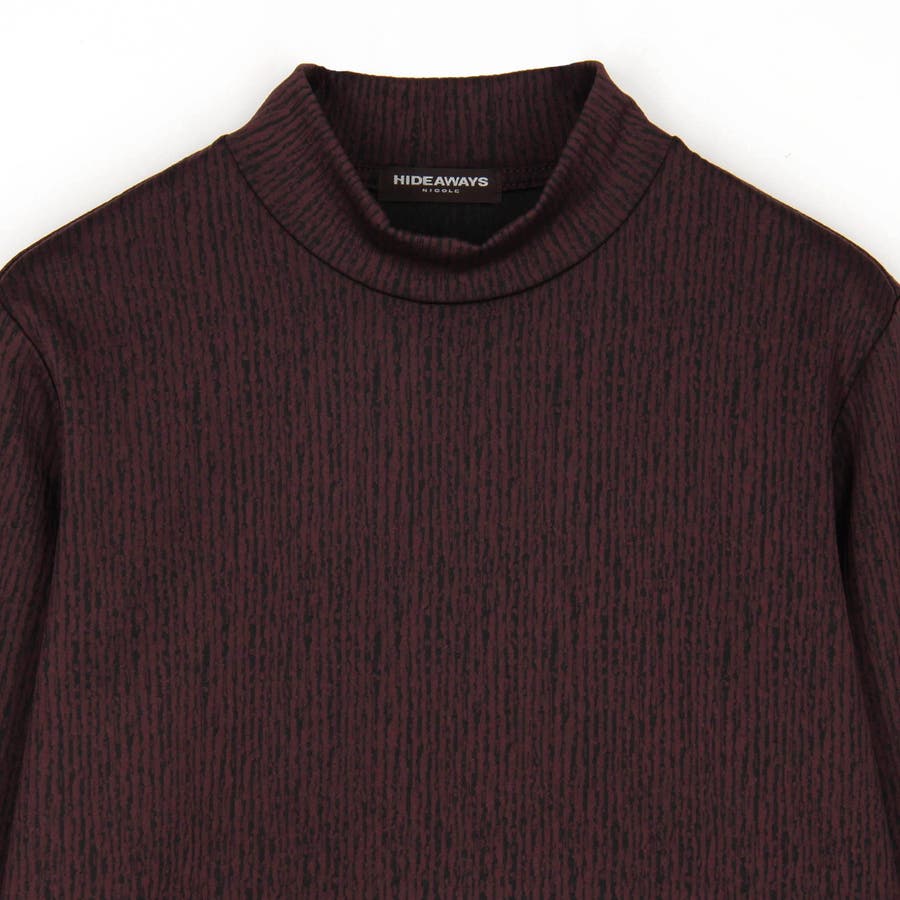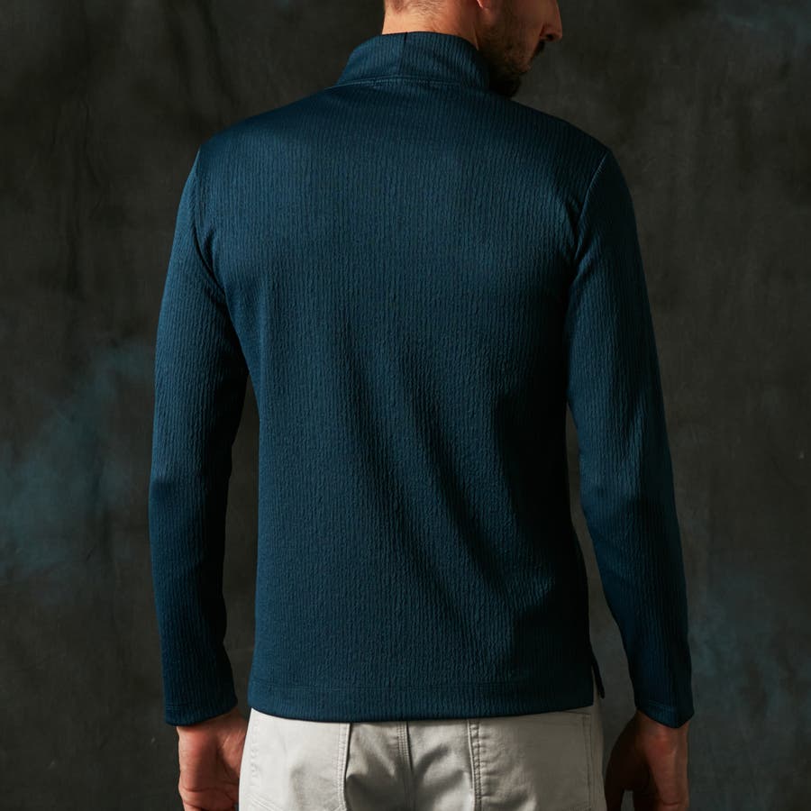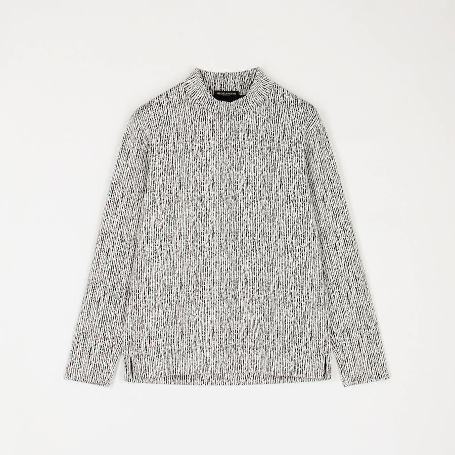凹凸のあるランダムなストライプ柄が目を惹く、モックネックプルオーバーになります。