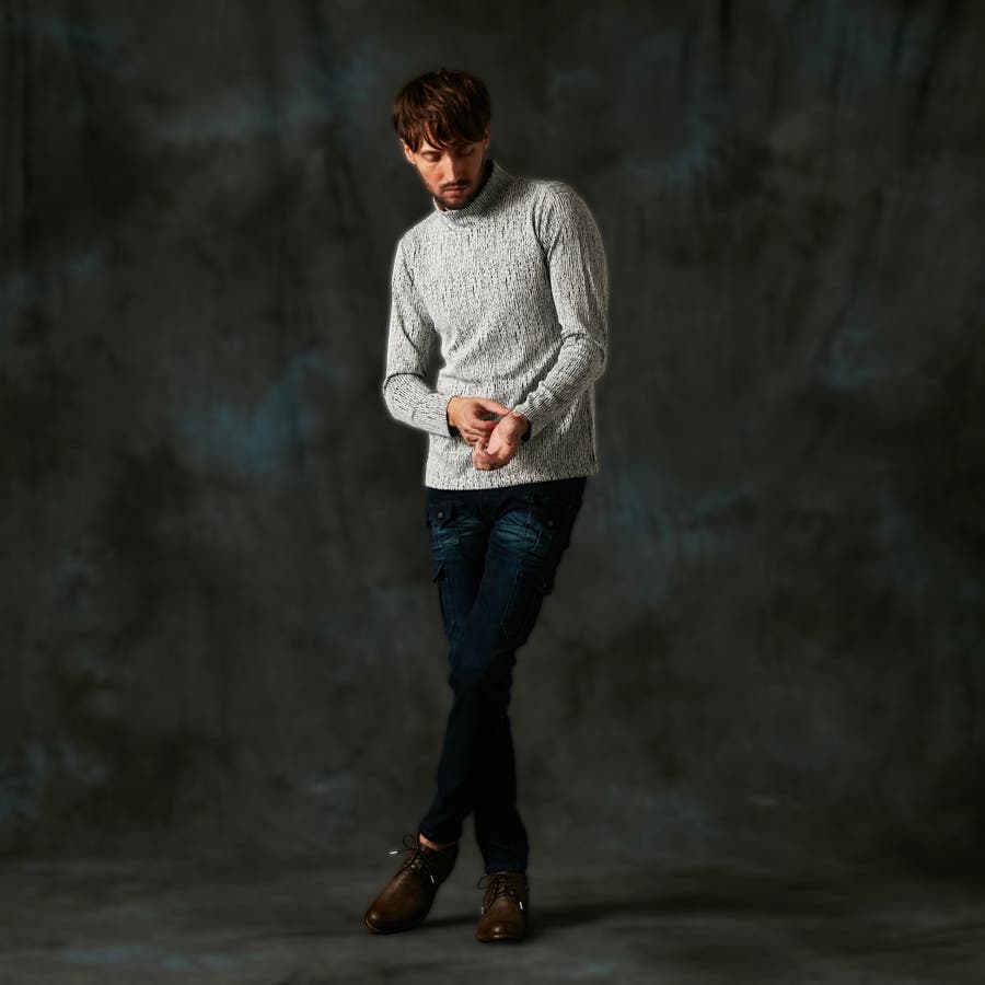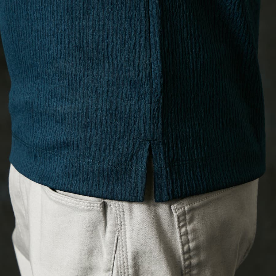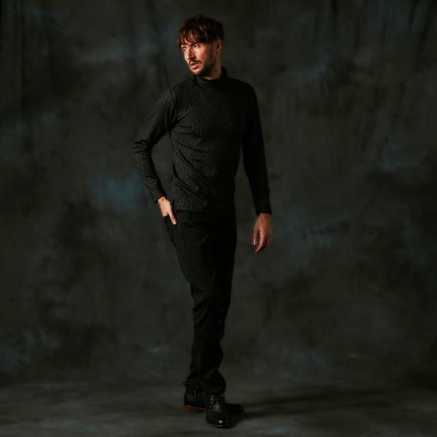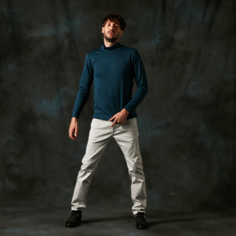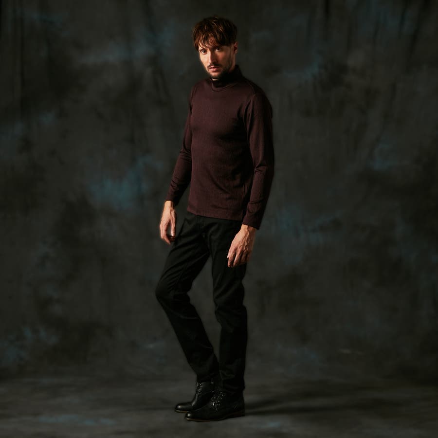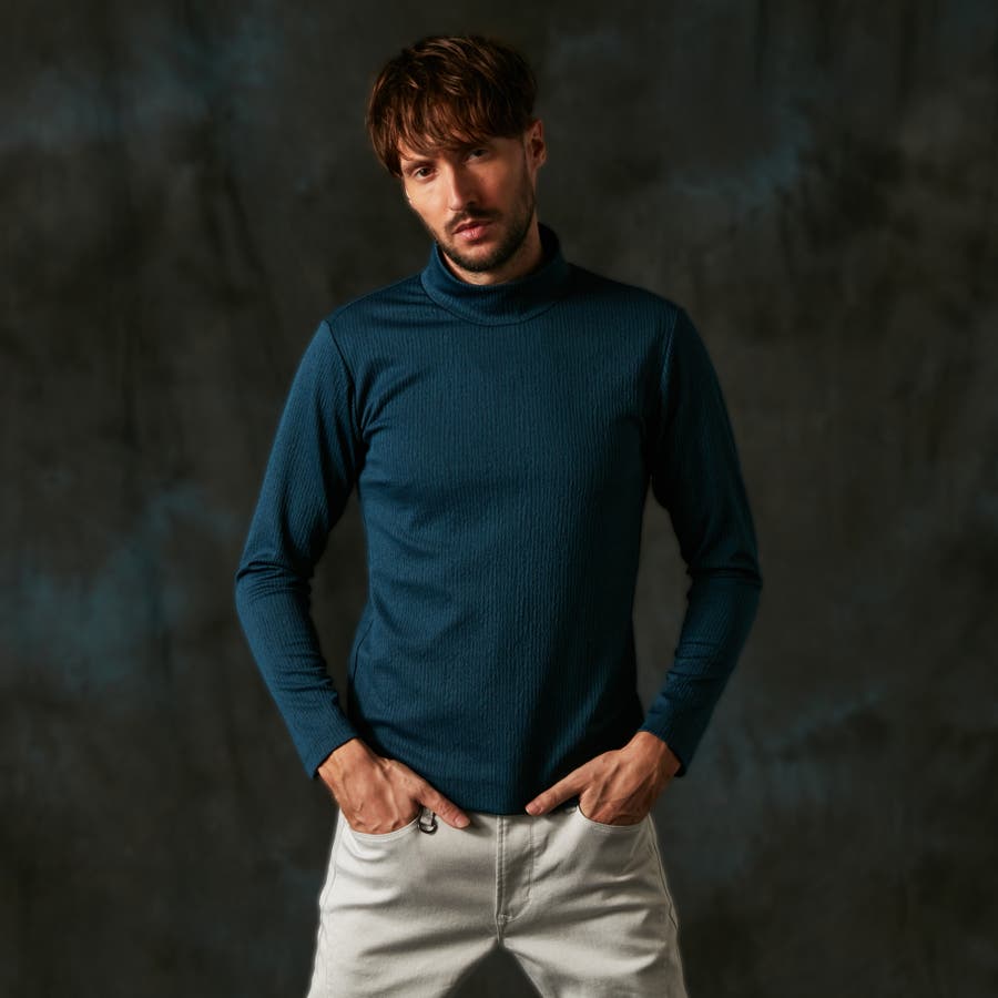 凹凸のあるランダムなストライプ柄が目を惹く、モックネックプルオーバーになります。