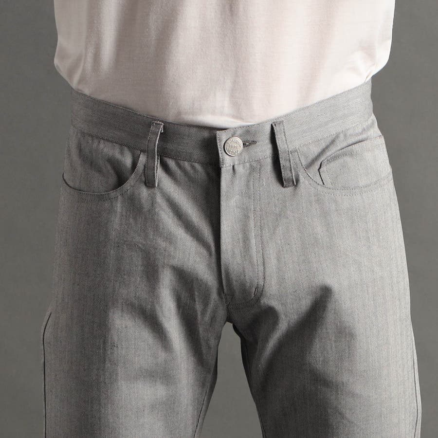 ストレッチ性と張り感を両立させたヘリンボンストレッチを別注しました。