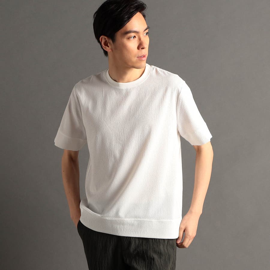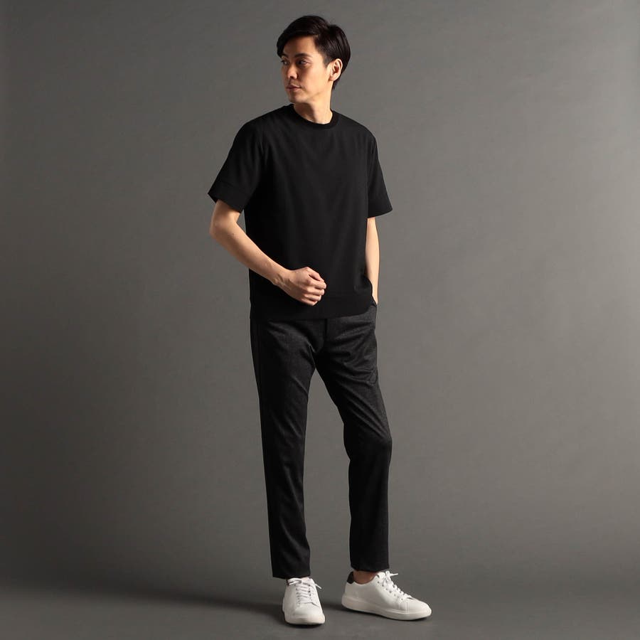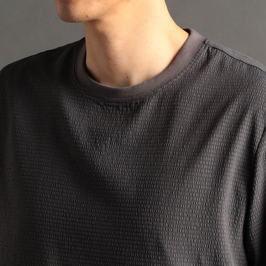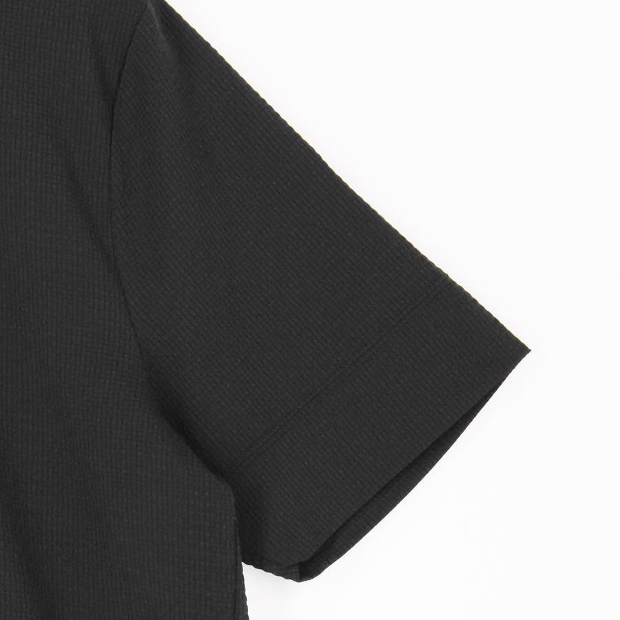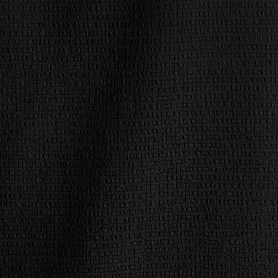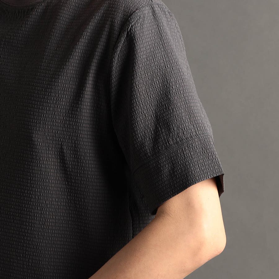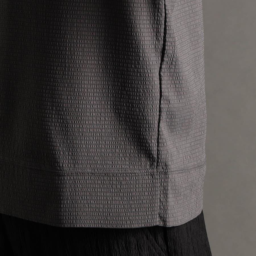 カットソー素材でありながら布帛のように高密度で張りのあるブロックジャカードを使用。清涼感のあるタッチのストレッチ・軽量ポリエステル素材です。