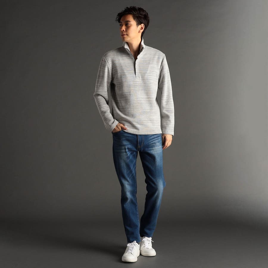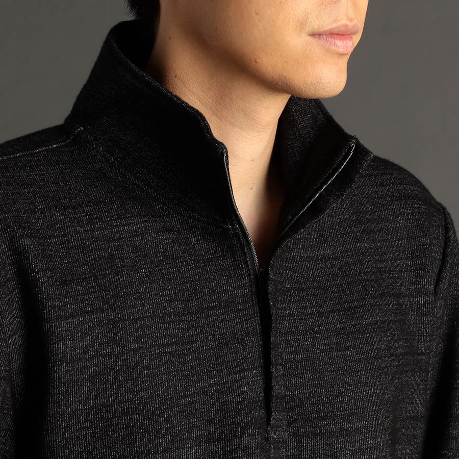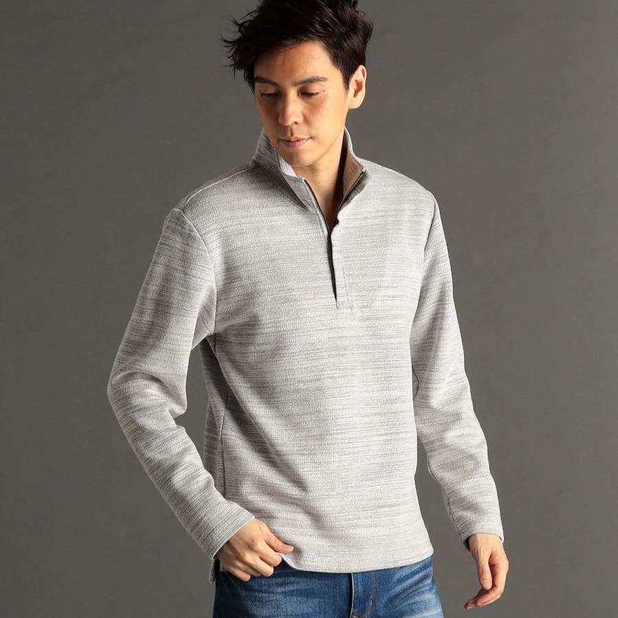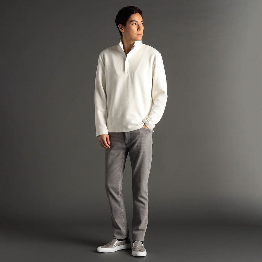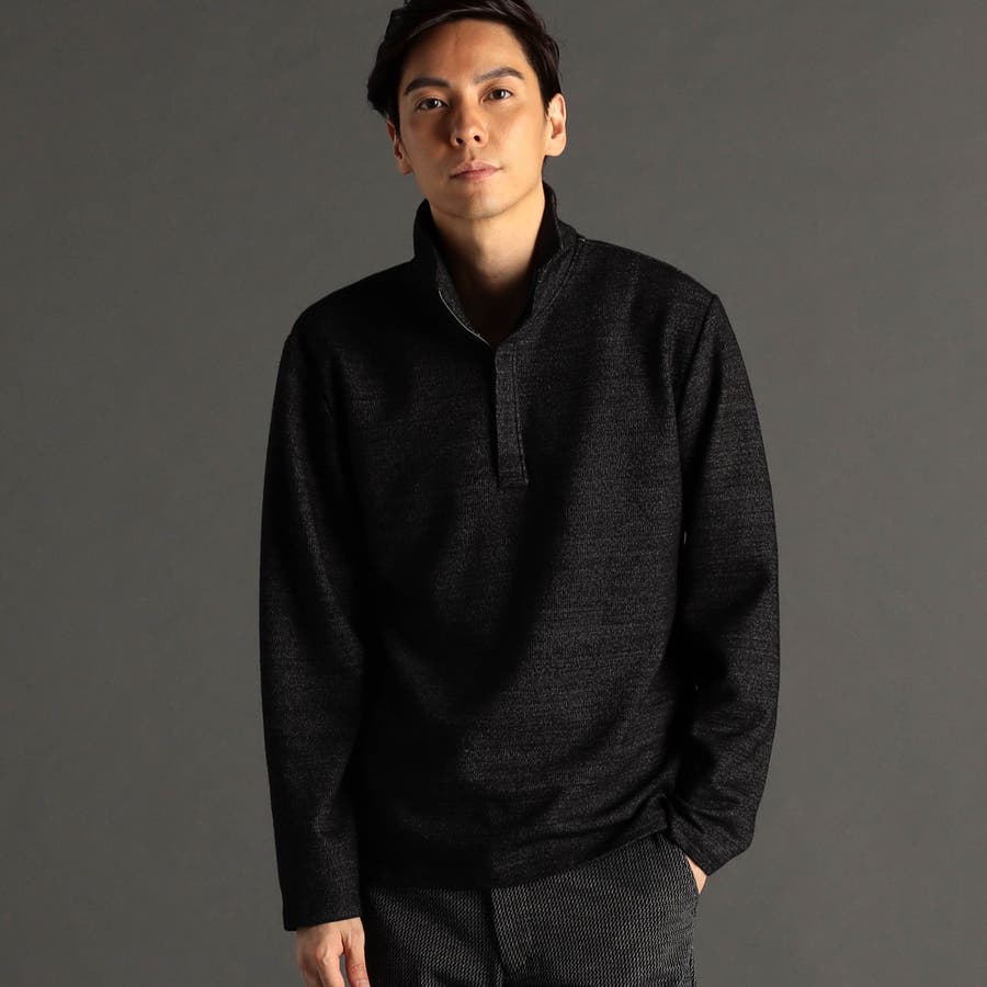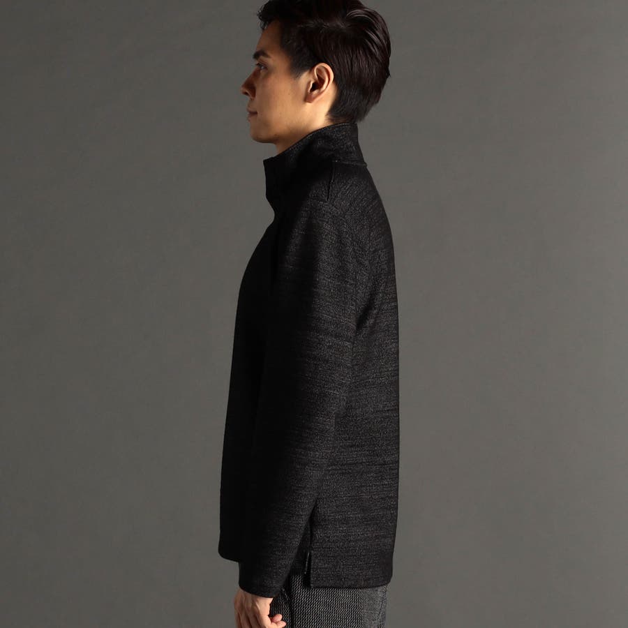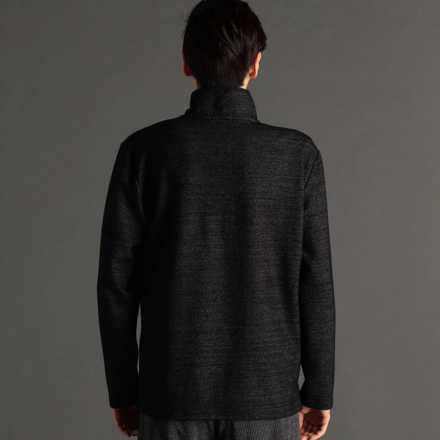 すっきりとした比翼仕立てのジップ開きと、上品なスタンドカラーで、アウター感覚で着用できるライトアウターです。
