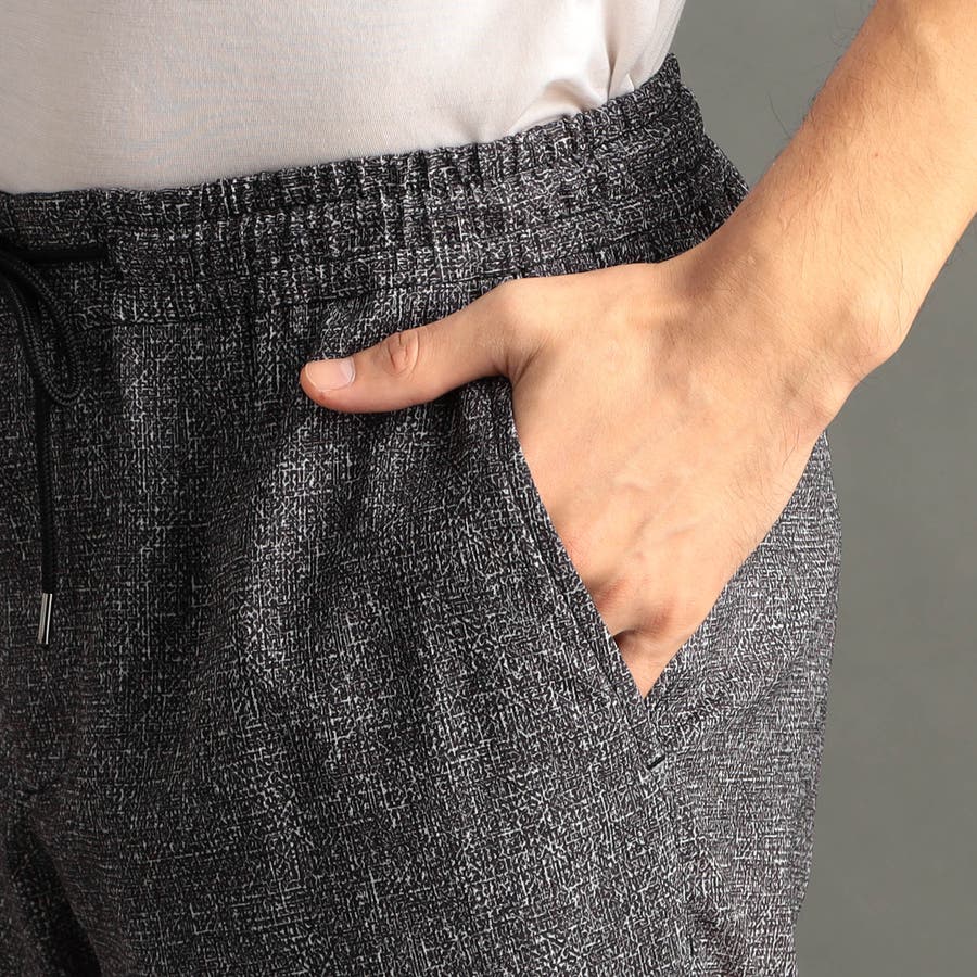 程よくゆとりを持たせたウエストラインから、裾にかけてテーパードさせたトラックパンツをプロダクト。